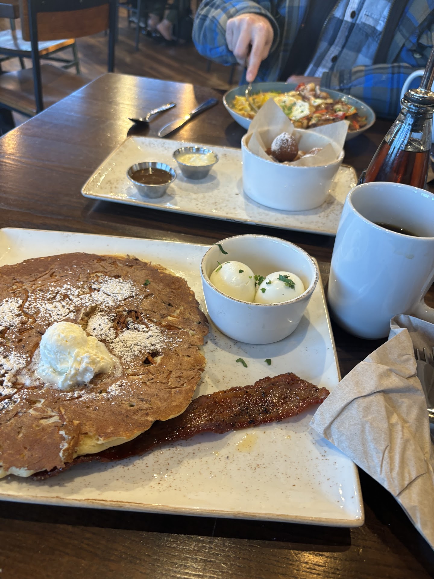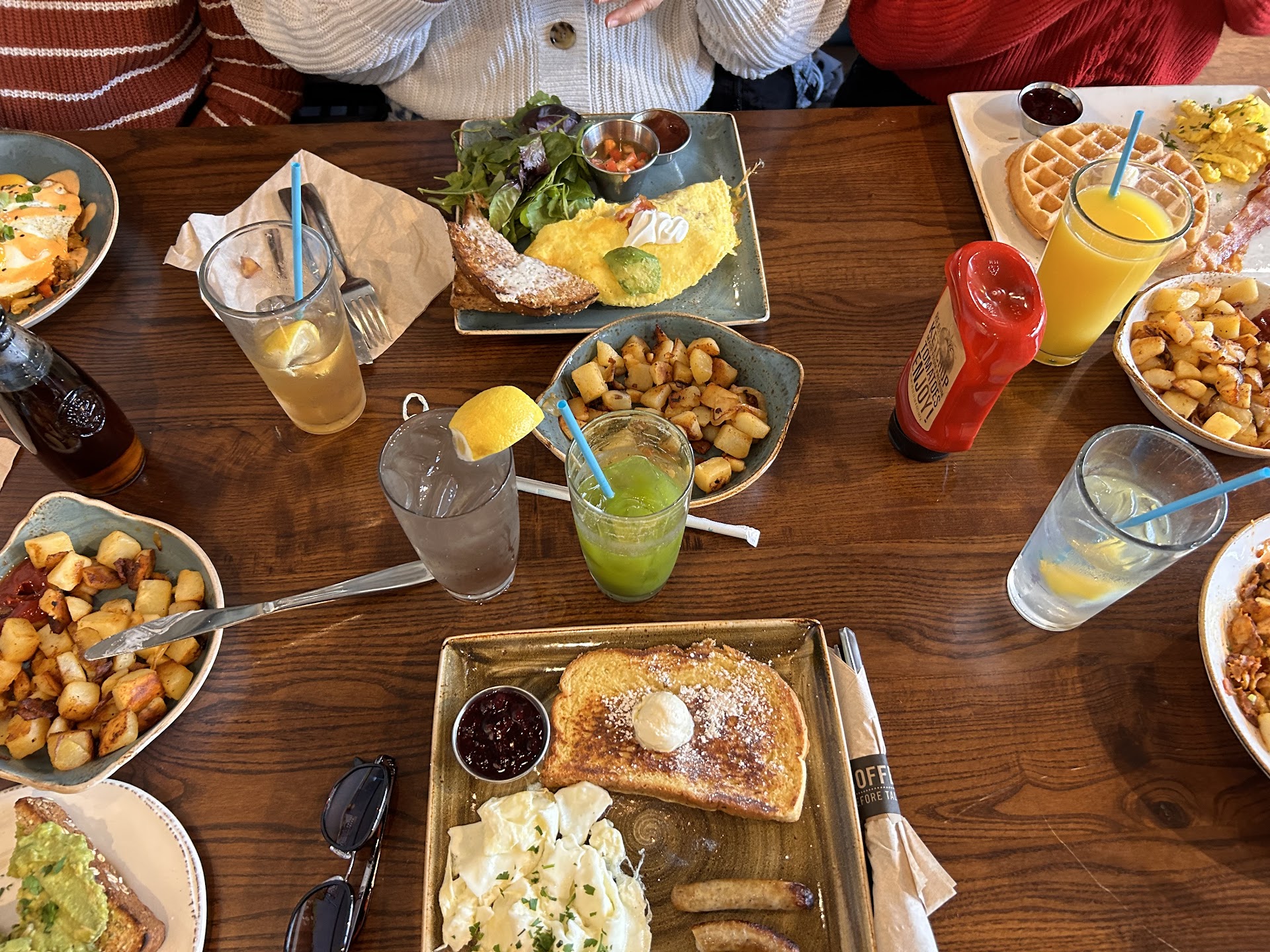 It's a great spot for breakfast or brunch for small or big groups. It wasn't too loud when we had gone even with several families with children. There is a bar for people who prefer and for people who like to eat alone, too!
