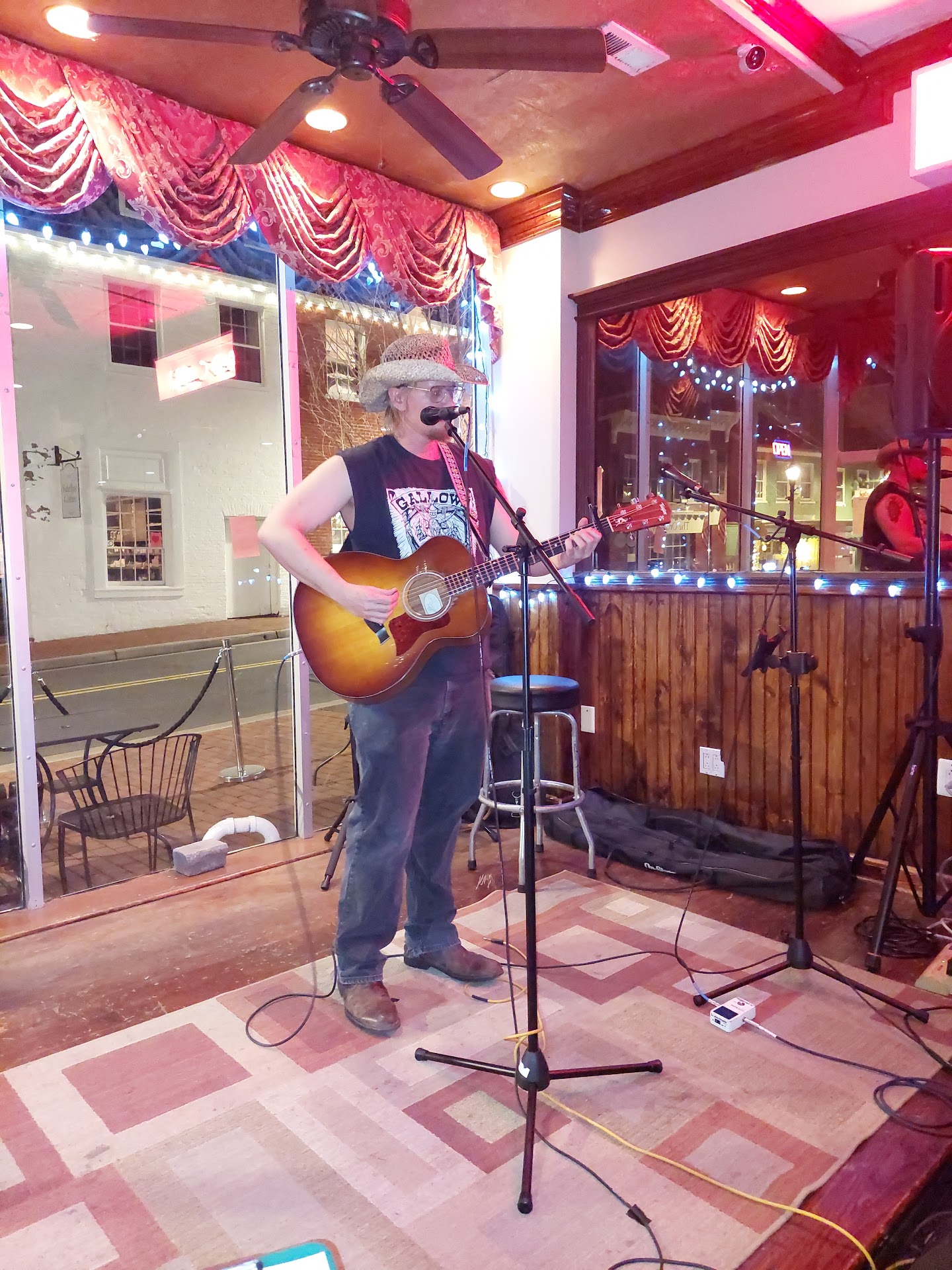 My husband and I came here Saturday night to listen to the bank Comic Book Colors. The band was awesome but the dining/drinking experience was not. We arrived at the bar and were greeted by a lady, but she didn't ask if we wanted anything. She then left and the two other bar tenders didn't even notice us for at least 10 minutes. It was like we were invisible. It was about 7:45 - 8:00 so the bar was not busy at all. Finally a guy came over and he said hopefully the lady had taken our order. We said no, she had not. So, he took our order. When the band was setting up we decided to move over to a table. At one point the one guy (from the bar) asked my husband if he wanted another drink but he never brought it. He had completely forgotten. Had to wait until the lady came back and then re-ordered one. Throughout the night we ordered a few more drinks, the service was a slow. We decided we wanted to order a snack, so since I didn't see any waiter in sight I grabbed a menu from the empty table next to us. I was looking at the menu and then placed it on the table. Then the guy at the table next to us flagged down the waitress and asked for a menu, and she grabbed the one from my table and gave it to him without asking if I wanted anything. I waited about another 15-20 minutes before I flagged down the waiter, and asked if I could order something. I asked what came on the cheese fries, because sometimes they come with bacon and sometimes not. He looked at my like I had 3 eyes and said umm.....cheese.... I asked if I could add bacon and he said yes. When the food was delivered the lady plopped the plate down and there was just cheese on the fries, no bacon. She didn't stick around to make sure our food was OK, and I was hungry and didn't want to send the food back, so we just ate it. My husband and I looked at each other and just laughed. Nothing seemed to be going right for us that night as far as wait staff service. I felt like we were being...