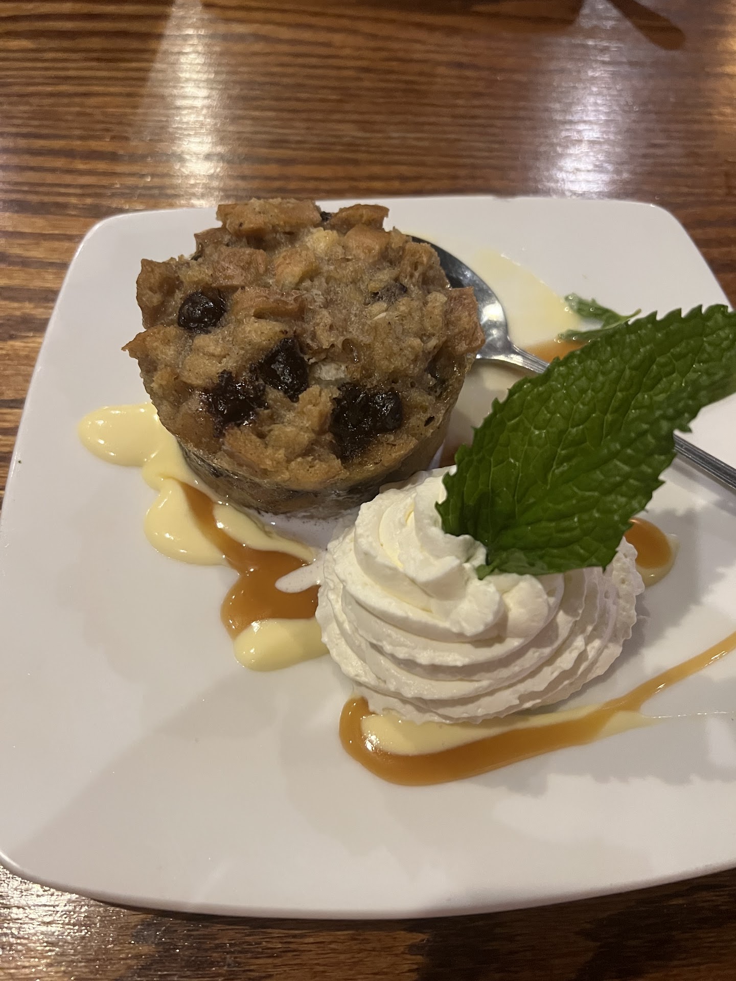 What really stood out to us at this visit was the service. There was as an issue with my food and high I did not discover until after I’d eaten a bit. When we told the bartender, he was immediately apologetic and said he would take care of it right away. The manager then came over and he was so very apologetic. You could tell he was genuinely sorry it had happened. He asked if I would like something else or anything. I told him the pasta had tasted awesome so far, so I’d like just another one of those. He had it out to me in maybe five minutes. Hot and fresh. And again, so apologetic. I think it also helped that we weren’t jerks about it and understand that sometimes things happen. He then came back and told us that he had taken the pasta off our bill and offered us dessert. I had the pretzel chocolate chip bread pudding and my husband had blueberry cheesecake. Both were awesome.