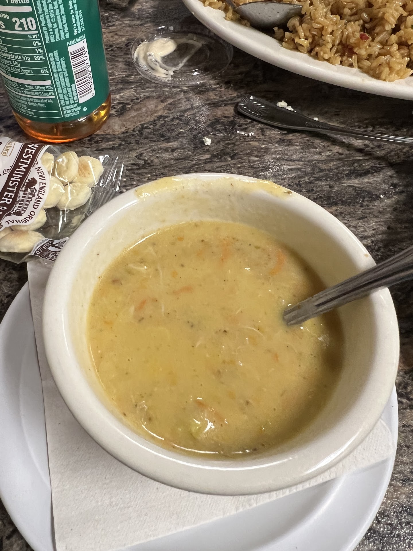 Read moreWe chose to dine here because I asked on Facebook if anyone knew of a place with cream of crab soup around here, and this place got raving reviews for their cream of crab soup. I brought my mom and my children along, and we were all excited for the soup, until it arrived at the table. Definitely not real cream of crab soup- it's more of a creamy Maryland crab soup. Definitely let down by that, and I was the only one who didn't mind eating it, but when we were talking to the waitress, she started arguing with my mother about how we don't know what cream of crab soup is- it was a bit crazy! Then our mozzarella sticks arrived, cold. So we asked if we could have them re-fried. When the waitress returned to take our dinner order, she prefaced by saying, " make sure to order something you're actually going to like." My mom and I were pretty taken back by this, but just replied that this was our first time dining here so we don't know what to order, and we hope we'll like the food we chose. We ordered fettuccini alfredo, chicken parmesan, and steak and chicken kabob platters. The food tasted like the frozen tv dinners my grandmother used to eat. Between the sub-par food, and the sub-par staff attitude, we will...
