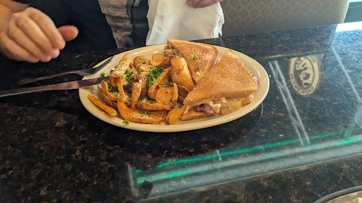 We have been in McCracken's to sit down and eat twice and have ordered take out multiple times. We ate in last week and our second time in was no different than the first. Greeting; it was non existent. We had to wait for the hostess to finish a private convo with another employee before she even recognized us. When she did, she was pleasant enough. We were seated behind the hostess podium, close to the door, which is totally OK! What wasn't OK was the bartender, our waitress (I'll get to her), and a cpl other employees coming up to loudly chit chat about guests and other grievances behind the podium with us in earshot the entire time. This EXACT same thing happened the first time we dined inside and was one of the reasons we had not returned in a long minute. Hoping things had changed, they didn't. On to our server, who was also our server the prior poor experience we had. She was unfriendly, uninterested, didn't greet us very nicely upon her arrival to our table, which also took a good few mins. When we ordered our drinks, my husband ordered a beer and water, I ordered water and said I needed a few minutes to decide on "something else." We also wanted an appetizer, but she was so disinterested in us, she ran off b4 we could tell her we would like to order the pretzels. She came back, dropped the drinks, did NOT ask me if i had decided on one, and walked away. She came back a few mins later and asked what we would like to order. We both just ordered sandwiches with fries. She did not tell us what the specials were. I had the roast beef sandwich, my husband the lamb burger. My sandwich was excellent! His was "ok," he said, but nothing super special about it. Maybe, if our waitress had cared enough to tell us what was good, popular, etc he might have been able to order something else. He enjoys trying recommendations/new things he hasn't necessarily had before. I can't remember if she came back and checked on us, because again, she was disinterested and not very friendly. When she asked if we wanted dessert, we said, "no thanks," and she proceeded to grab my plate, which had all of my fries on it, which i wanted to take home, so asked, "may I have a box, please?" She said, "sure, set my plate back down, brought me the box and that was the last we saw of her. No "thanks for stopping by," no "we'll see you next time," or "have a nice night." Just zero pleasantness from honestly anyone in the restaurant. This was on a Thursday evening, restaurant wasn't crowded, and while I'm sure everyone says, "and we're pleasant ppl," we really are, lol! We're super easy to please and laid back.