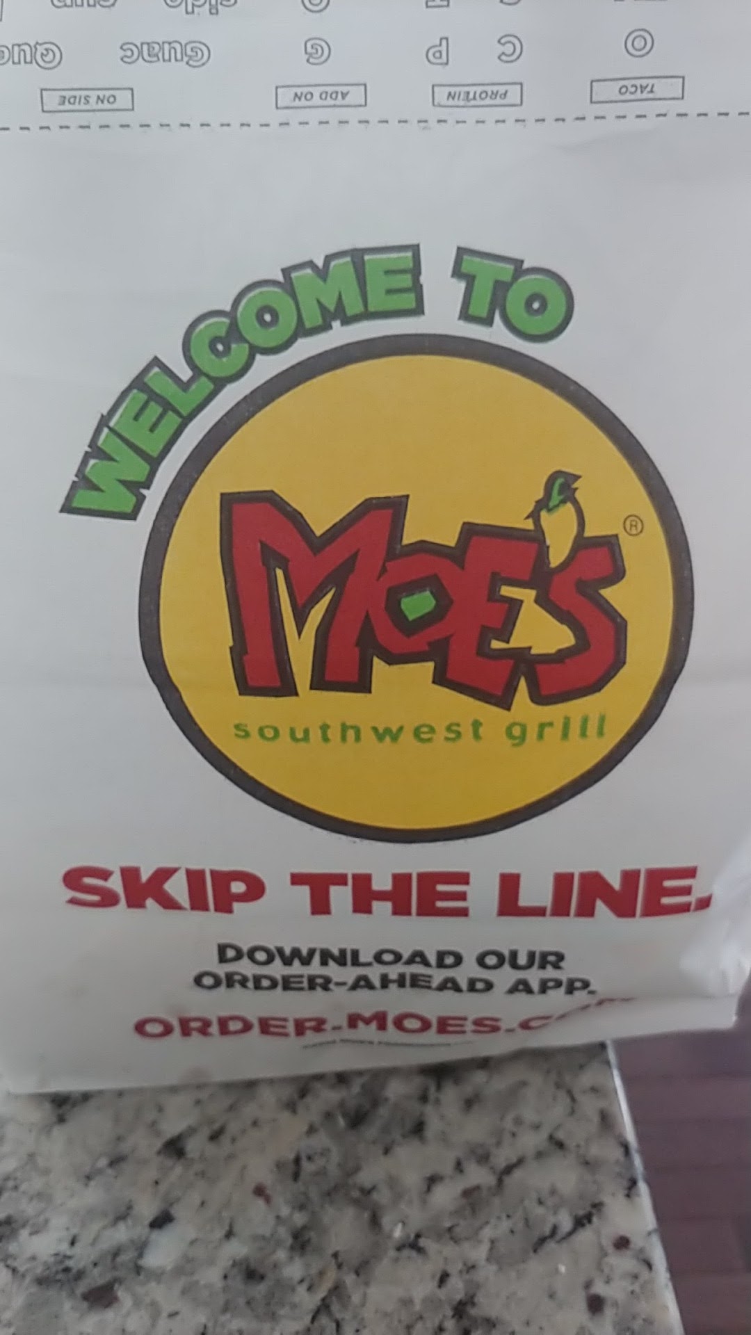 Waking from a night of tequila fueled craze, head spinning, and stomach desperate for any sort of caloric intake to absorb the previous nights festivities. Stumbling into my kitchen as I prepare my morning coffee, long time friend and roommate enters the room. "Hey man sounds like you all had fun last night! I'm sure you're hungover, remember it's Moe's Monday!" "You're right!" I exclaim. Memories of high school begin flooding my head. The great experiences that we all had driving around in the Oldsmobile after class. Scrounging up some change to hit up Moe's, to attain the irresistible fix that is a Joey Bag of Donuts. So here I am, with the love of my life many years later. Greeted with the sound of a bleek and defeated "welcome to moes". I too understand the pain of corporate infrastructure and the eventual entropy we all face. As I stand in line, still hopeful, I notice just like me everything is falling apsrt. The booths all ripped and shoddily patched. The leak from the ceiling filling a bucket and the families filling the nearby tables. The sauce bar gone astray and clearly unwiped for many a day. "I'll have a Joey with chicken please" I cry out in desperation. A ripped tortilla thrown onto the warmer and day old dried chicken hastily tossed on. Remnants of teen angst in line behind me, sharing an order of queso together. As I sit down, unsure of the price that was paid, and the hours of my time that went into this purchase. I notice my dry and lifeless burrito and wonder was it nostalgia, or have you too Moe, have you also withered as I have. I can't help but feel a connection and a deep understanding. I leave, never to return for as I have put the past behind me. Moes I hope you too learn from your experiences. Is it time for you to be laid to rest, or do you yet have life in you? Here I am in my home town heading to my home, my love beside me. Sad that she too couldn't experience the joy I so fondly remember. She pats my back, "I'm sorry hunny,...
