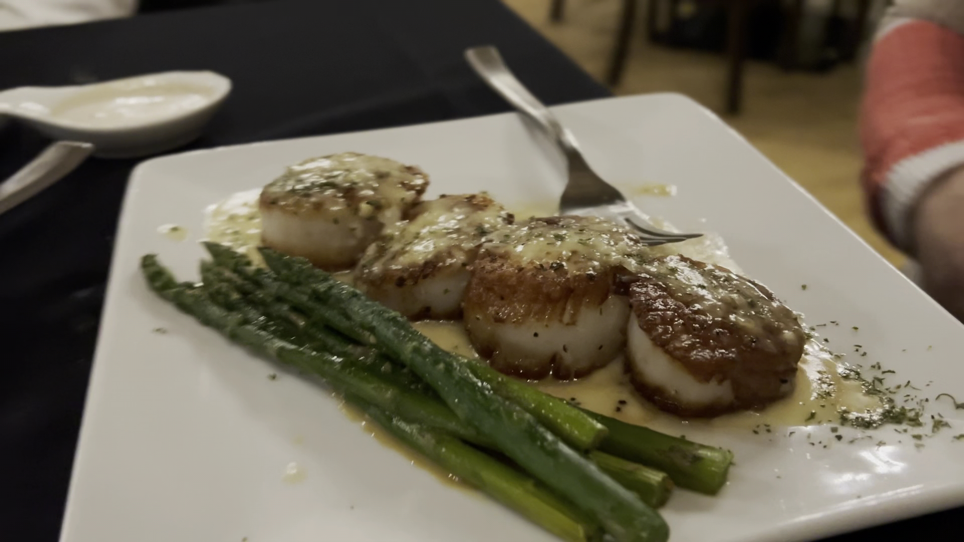 Read moreWe were a party of 5. Wa walked in and were sat right away. Within moments of our arrival, many people came in wearing unusual attire. They were part of a pub crawl. It became unbearably loud for about 30 minutes or so until they all left. For my appetizer, I ordered the French onion soup. It was very good with lots of flavor. It comes with a pair of cutting shears so the foot cheese can be cut. Very unique idea ! I also had the side Caesar salad which was also very good. For the entree, I ordered chicken Parmesan, which came with a generous portion of spaghetti. The picture on the iPad menu does this dish no justice. The reality is that the actual chicken breast is about 3x the size of the one in the picture, much to my surprise. What it lacked, as is the case with many restaurants, is enough sauce and mozzarella cheese. My entree had a small amount of sauce with one slice of cheese. This dish should be smothered in sauce and heavy on the cheese. It should be shredded mozzarella covering the entire breast or at least ask the patron how much sauce and cheese they prefer. It was good but not great. Not nearly as tender as it should be. My wife ordered the ahi tuna. Again, the picture on the iPad does this any justice. The actual piece was also looking about 2-3 times the size of the photo in thickness. Unfortunately, it was not a high quality piece of tuna. If it was originally, then possibly it was older than a day or so. We order ahi tuna many times at high end restaurants as we did the weekend before and it was incredible. We told the server and he promptly removed it and brought my wife the double cold water lobster tails. She said they were delicious. Between appetizers and entrees, we were served a small portion of raspberry sorbet to cleanse our palates. This was a nice touch. The pre dinner cocktails were delicious. The key lime pie was very good for dessert. Overall we enjoyed ourselves, some meals were better than others. It does get quite loud in there. The piano player played great tunes but it too was a bit loud making it hard to hear our conversations. The prices are about 15% higher than they should be...