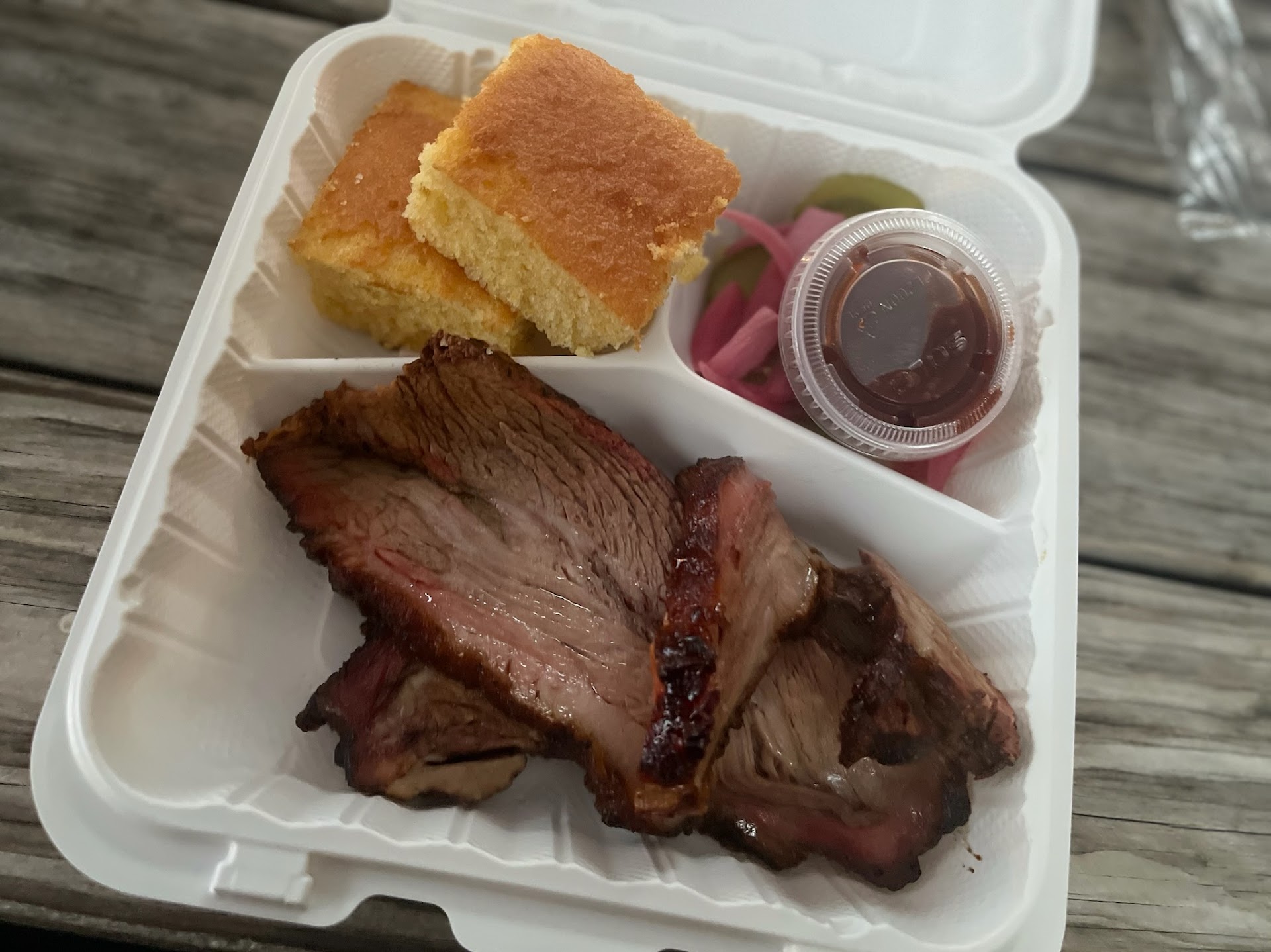The food isn’t bad - I personally enjoy the Little Schmidt pork and brisket combo. It does appear they you now get noticeably less food on your plate than they used to serve. Meat is always pretty tender and never too dried out so that’s a plus for a BBQ place. I like their potato salad and would give it an 8/10. Cornbread is alright. Sauces for the meat are also pretty good. We most recently ordered fried pickles and I was not satisfied and the fact that those are $13 on the menu definitely made us regretful that we ordered them … what robbery for a bunch of sliced pickles!