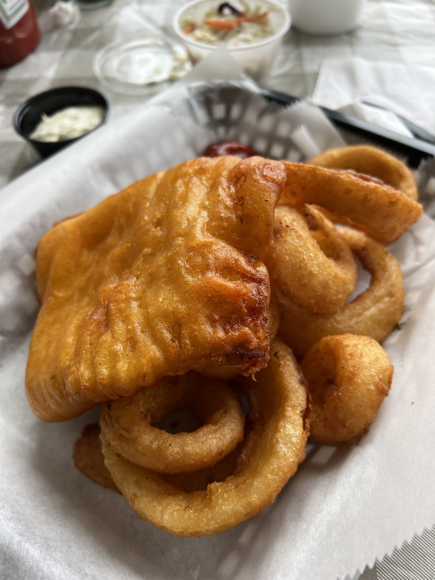 Read moreAs a displaced New Englander one is always in search of good ole’ hometown seafood. And to date one has been woefully disappointed. The first clue lies with “white chowder”. Interesting descriptive choice that. Not “clam chowder”, nor “fish chowder”, but “white chowder”, though this could be helpful IF Manhattan clam chowder (tomato based & hence red), was on offer, which it is not. My partner got the whole belly clams, and I opted for the fish & chips (& subbed fries for onion rings). The whole belly clams were small as were the portions, & the fries greasy. The fried fish though is the real star of this commentary. It is hands down the worst fried fish that has ever been offered to me. A pathetic cut of fish, bland & heavily battered in what is the “British” style of batter, most definitely not the “New England” style which is much lighter, tastier, & flakier. If blindfolded one would not be able to distinguish between the fried fish or the fried onion rings. One would be better off getting a fillet o’ fish from your favorite fast food restaurant, and that’s saying something. I was quite surprised to learn that the owners were from Rhode Island. I have eaten seafood from Provincetown to Bar Harbor, and this fare comes nowhere close. It’s disgraceful to call this “New England” style seafood. On a brighter note, the staff were very friendly & attentive. Give this...