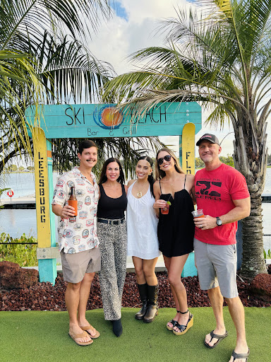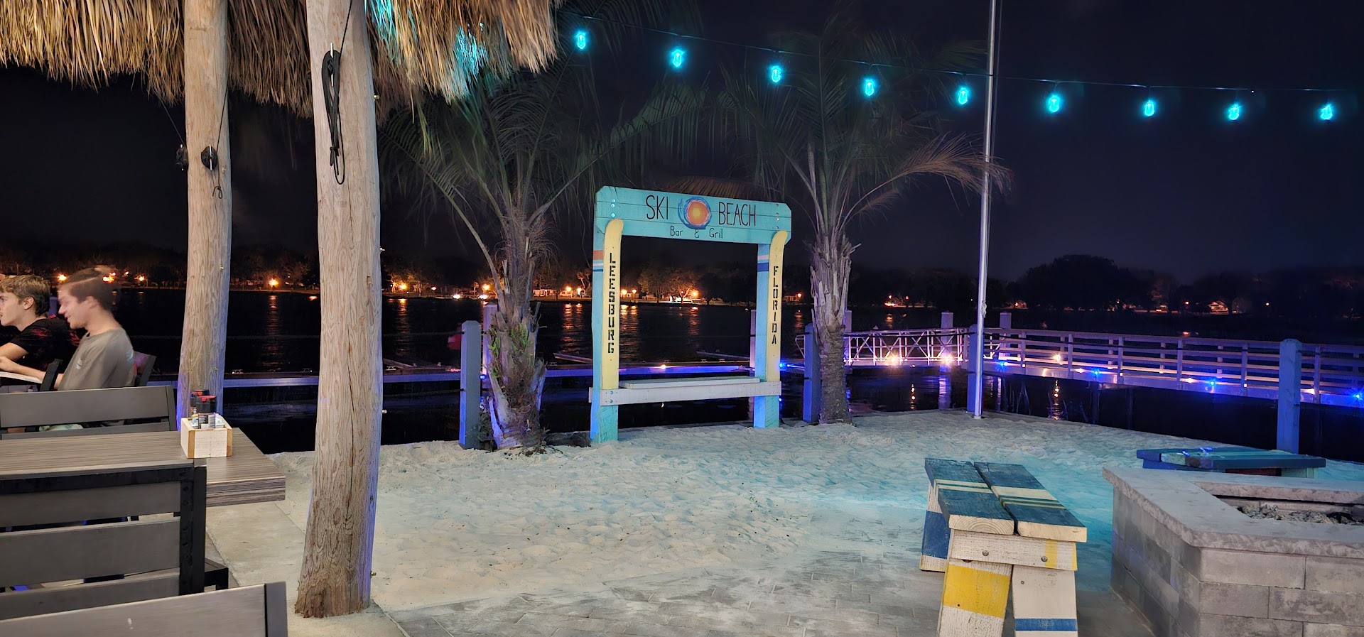 We are new to this area. As we were headed home from one of the natural springs, we saw this place and felt it looked worthy of a try. This afternoon we decided to give it a go! My initial impression walking in was this; the greeting could have been much more welcoming (makes all the difference!!!). Looking past that, because the lake view and surrounding venetian bridges were going to be a major bonus to walk off dinner, we were escorted out to the deck area which overlooked the beautiful lake. Firstly, the view was very nice. We could hear the wildlife and boaters and really enjoyed the business of that! Moving onto the service. We could have been asked what we'd like to drink much sooner, after 10-15 minutes we did get a nice greeting from our server, she was very sweet, and we did get our drinks ordered and to the table about 10 minutes after that. She offered to let us take our time ordering entrees (menu was impressive) and place the saltshaker at the end of the table when we were ready to order our entree, so not being rushed was very nice. Before I begin on the food, please for the love of God can I get a good G&T with bubbly tonic! It was perfect gin proportion but sadly the tonic was flat, ruining the experience of a light and bubbly afternoon drink on the lake! We started with the BBQ shrimp appetizer, which had excellent flavor. I would say this on a SERIOUS note to the chef- add a nicely sized rounded scoop of sticky rice in the middle of the dish with a garnish atop. Maybe showcase one small gator bite on top of the rice with a green garnish of parsley or chives (might sell a few more if one can sample it, I know I wanted to try just one as opposed to buying an entire dish). Also, consider adding spoons for 'slurping'. I felt the delicious juices of the appetizer were a total waste. Now you might say that is what the bread is for, however for those who don't do bread- spooning would have been wonderful and easy addition, especially with the rice (even my bread loving husband agreed with this). I ordered the crazy cajon pecan chicken salad, and out of curiosity I wanted to also sample a salad dressing that was not included (The Rio Pepe dressing). So, I carefully asked the waitress to place a sample of that 'on the side', just to give it a try. Unfortunately, I was brought the wrong salad. Being a first timer at Ski Beach, I didn't realize it was the wrong salad until I took a few bites and tasted an olive. By this point I didn't see a reason to send it back. It was VERY good despite being a mistake, overall, I did enjoy my salad. I can see how the mistake was made; I was brought the Rio Pepe salad on accident because I requested to sample the Rio Pepe dressing (innocent mistake). My husband ordered a burger, he said it was cooked perfectly and well-seasoned. I sampled his fries, and they were great! I would say to make this a 5 star review I would be sure the greeters at least appear genuinely interested in this being a great lake front eating experience for you. I would also advise, don't serve anything that requires tonic from the bar if it is flat, only offer club soda if that is the case and dress it up with fresh lime or bitters (makes all the difference). Trust me your Gin & tonic customers will be thankful for the swap! The food was good, the service could be improved but was ok. The view was great, the venetian gardens adjacent were truly a wonderful experience to take in after dinner. We'll be returning to try another meal and drink! If I could do a 3.5...