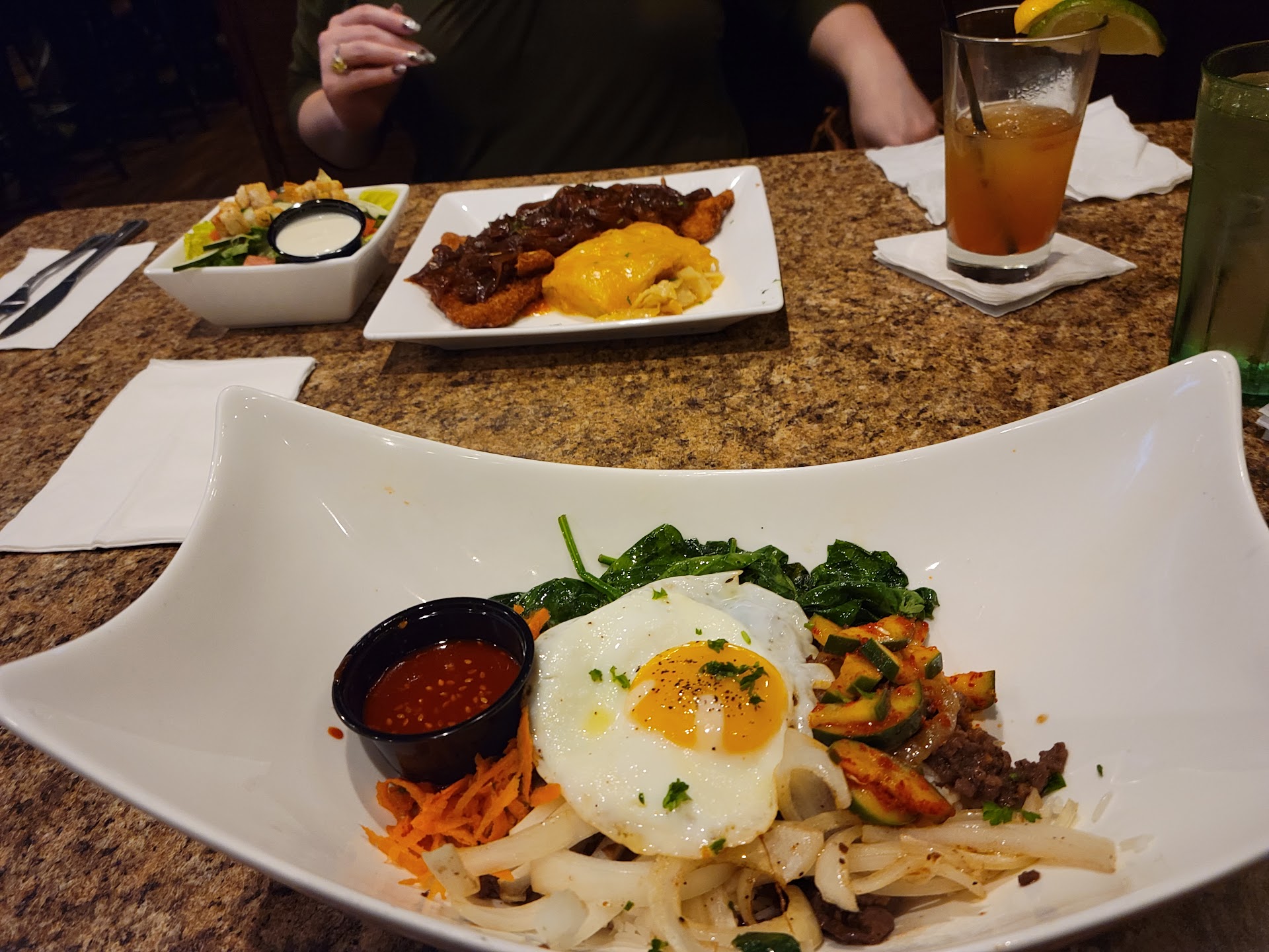 Food was great minus being cold, all fountain drinks tasted awful (poor water quality or like cleaning/filtration), and after waiting twenty minutes for lemon to hopefully improve the taste of our waters and sodas: I had to go bother a bartender to actually acquire some.