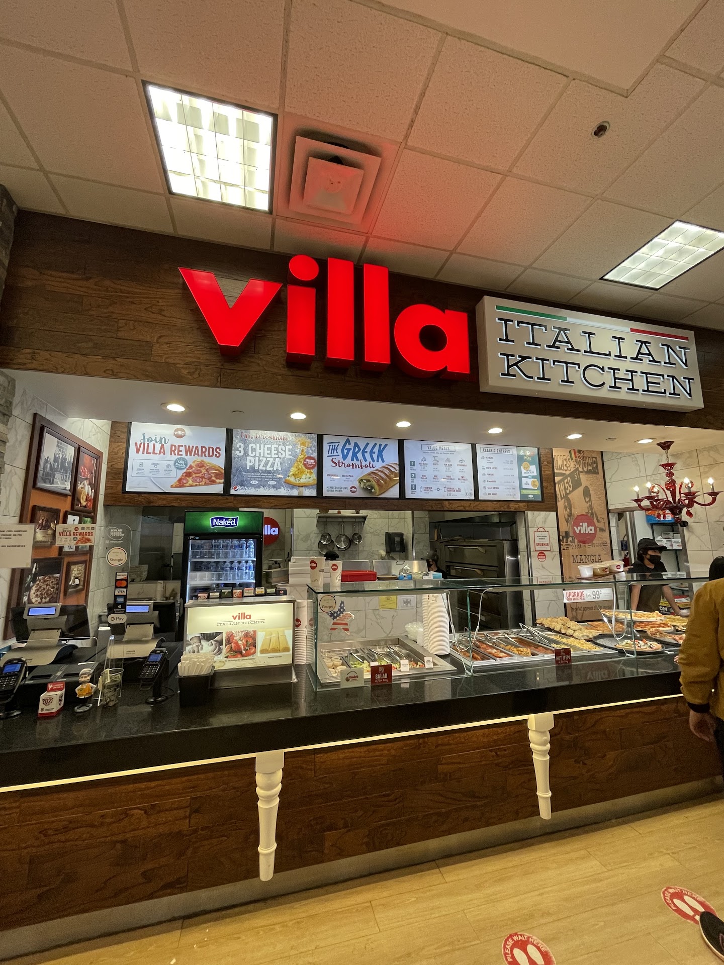 Health concern: never expected a service from outlet food court, but what happened for my last experience was out of line and a health concern in time of Covid. I consider it's normal to mix up the customers' orders, the guy in front of us was vegan and specifically asked ingredients and ordered vegetarian strombli, we ordered the same vegetarian strombli and one slice of meat lover pizza. When the waitress pushed our order to the guy in front of us, he was upset because there's meat item in his tray and he spontaneously tried to push the pizza out and inevitably touched the pizza with his bare fingers. We all saw that, and I spontaneously told the guy in front of us "Please don't touch the food if it's not your order." And then I told the waitress if that's my order, I'd like a new slice of pizza since that one has been touched and contaminated. She insisted pushing the contaminated slice pizza onto my tray, so I told her a second time thinking she didn't hear me clearly due to the mask I was wearing. This time she wasn't happy, and yanked the pizza out of my tray and moved on to the customer behind me and intentionally ignored my request of a clean slice of pizza. I did insist a 3rd time I need a clean slice of pizza, she reluctantly scooped a slice without putting it into the toaster and put it on my tray. I seriously don't mind it's not being toasted, it's a thousand times better than the slice being touched by random person in the shopping mall with bare fingers...