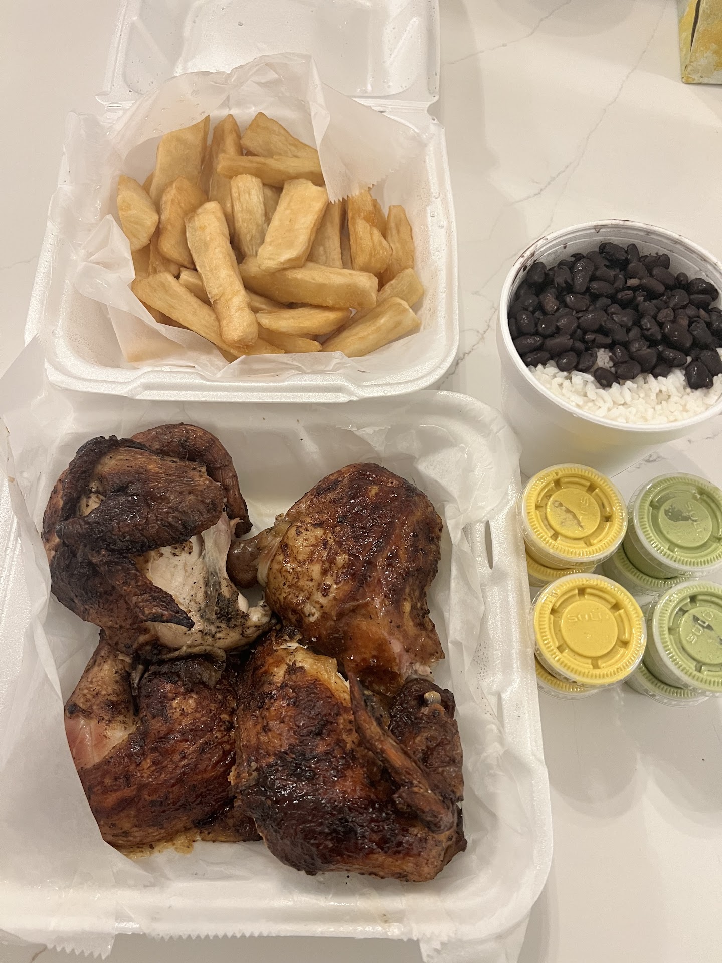Last year, Leesburg had more snow than it had ever had in decades. My good friend Alejandro and I were enjoying a cold January night when, out of nowhere, flurries of snow starting whirling at us from all directions. The cold winter's wind was unforgiving and the snow battered us relentlessly. We were hopelessly lost, and it came to the point where we weren't sure if we were going to make it. To make things even worse, we saw a huge beast of man, trudging around in the snow slowly following us. We figured it was a snow monster. Alejandro fell into the snow and muttered, "Go on without me..." and a tear rolled out of his eye and froze on his cheek. But in the distance I saw a faint light, it came from the intersection near Safeway and Roy Rodgers. I lifted Alejandro onto my back and carried him to the light. It was Wishbone Rotisserie. A jolly-faced Mexican man pulled us in, and before I could even mutter a word out of my frost-bitten mouth, he was nursing us back to health with some Spicy Steak Sandwiches and Fried Yucca...It might have been the best food I've ever had in my entire life. Alejandro and I were about to order some more Buffalo Chicken Quesadillas when the door swung open. It was the snow monster. Alejandro spilled his delicious yellow sauce in pure terror. Alejandro and I gave each other one last glance before (what seemed like) our inevitable death. But when the snow monster drew back his hood, it was none other than Caleb Hilgartner, the kicker of our high school football team and coolest kid in the whole school. His stern eyes glanced to and fro across the restaurant until our eyes met. "You eat at Wishbone too? I thought I was the only one!" The rest of the night was spent laughing and telling tales of forgotten times around Buffalo Chicken Quesidillas, Spicy Steak Sandwiches, Yellow and White sauce, Fried Yucca, Half Rotisseries, and Mt. Dew. It was the greatest night of my life. Thank...