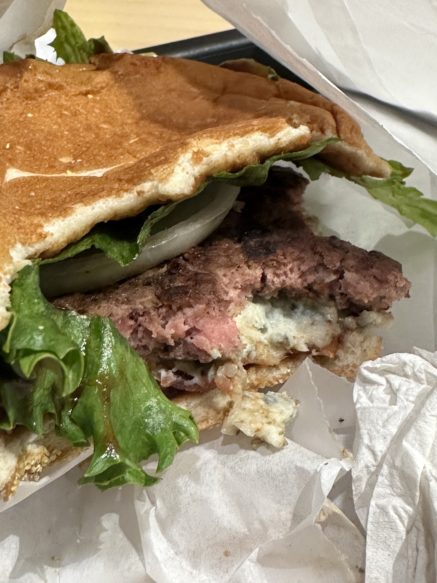 š PRODUCT/SERVICE - 5 I ordered the Tangy Bleu Bacon Burger, a personal favorite of mine. I love the taste of bleu cheese, which was amazing. Well worth the price of $6.79.