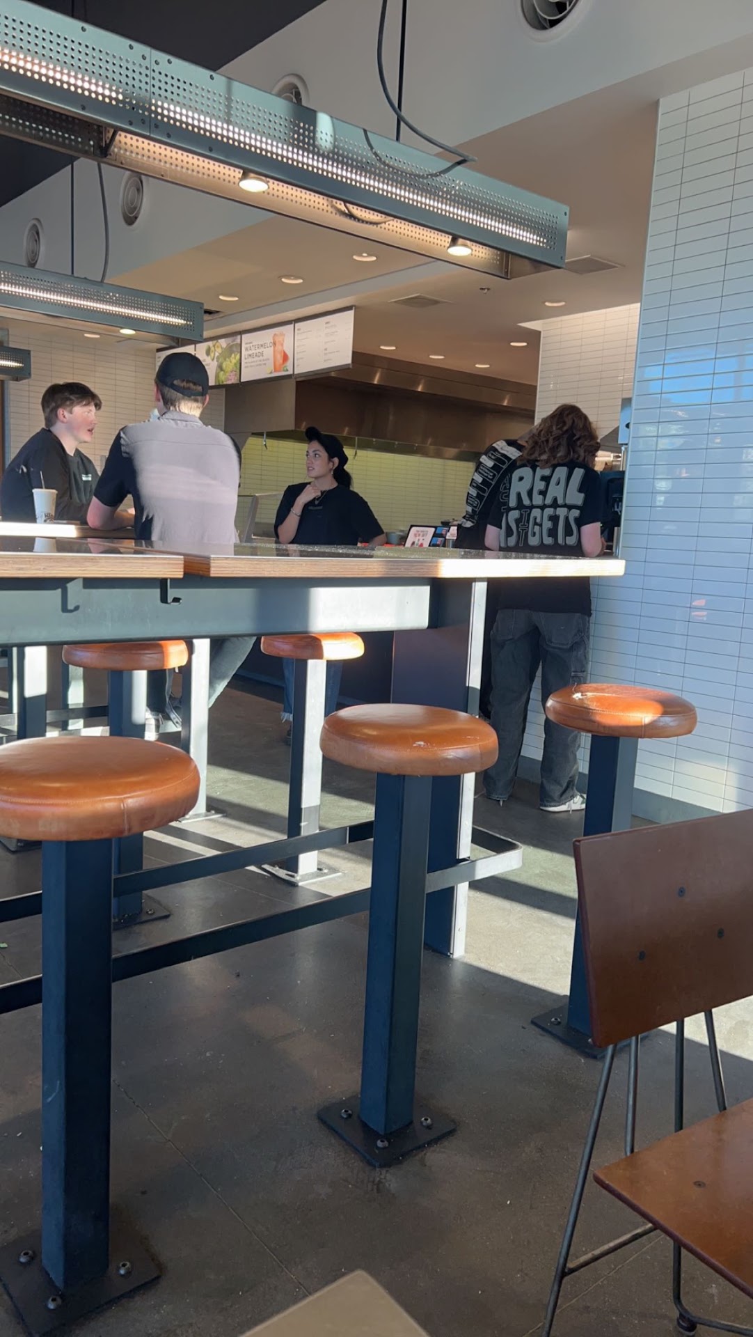 Then the short hair girl with glasses was also bad at her job unfortunately. She poked through the previous customer's burrito bowl somehow, and it started spilling sauces. Not a good look. She yelled for another tray to put it in. She double trayed it and then tried to put it in the bag. The customer asked why is it leaking like that, the girl said, "I don't know, I have never seen it like that." then she proceeded to put the leaking double trayed burrito bowl into the paper bag. The lady was not pleased but she left with the food.