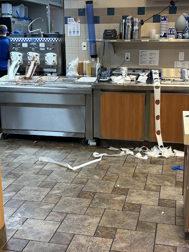 We get to the restaurant just after 4:00 on a Saturday. An employee steps up to a register and takes our order, no wait. We get cups for drinks and there are no lids for the medium or small drinks. The area with drinks and condiments is also very dirty. I walk back to the counter and there is a female employee in full culvers uniform just standing between the entrance to go behind the counter and drink fountain. I tell her there are no lids for drinks she replies "I'm not clocked in". Then why are you just standing here?? She doesn't bother to ask one of her coworkers to assist with getting lids. Since she obviously isn't going to help I ask can someone else get lids. She nonchalantly glances around and tells me "they are really busy". So I have to call out to our cashier and ask for lids for our drinks. He stops what he is doing to walk over, open a cabinet give me lids for our drinks then and fill the lids. Then the tables are filthy, I had to clean it for us to sit. Floors are filthy with trash everywhere. Our booth had dried fry sauce or ketchup dried on the wall and window sill. The employee that brought our food practically dropped the tray on the table and walked off. The bun on my burger was burned. What a terrible visit. The two stars are for the Coke Zero which was about the only good thing about this visit. Won't consider this...