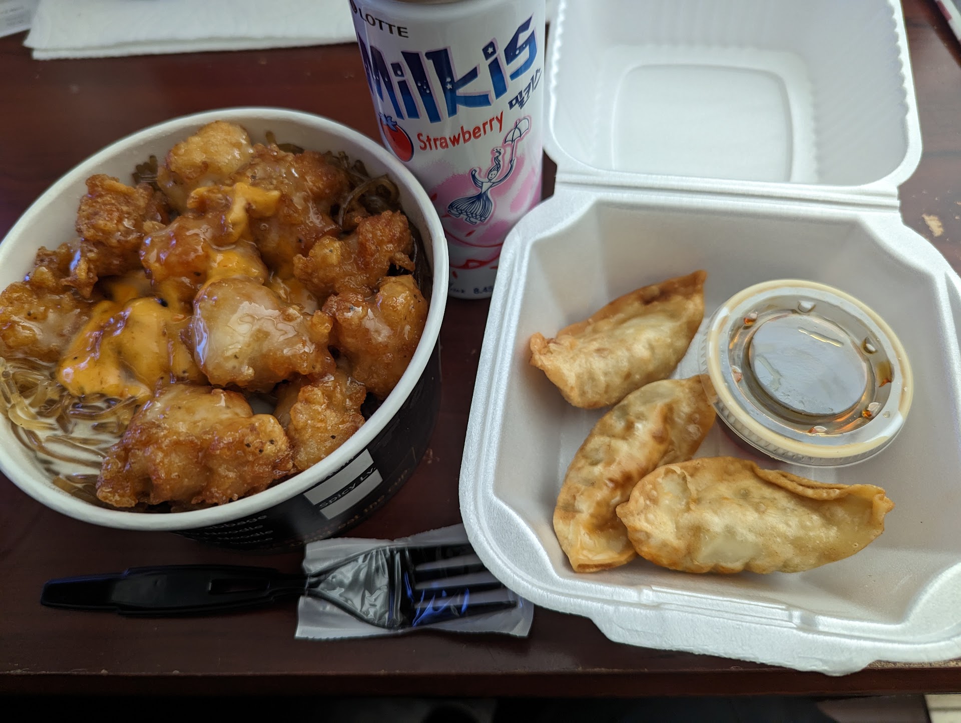 Read moreI stopped today for the first time to try this restaurant. I have never had food from any location. I ordered the Combo Bop with Korean style tangy fried chicken and Korean style BBQ chicken. I also asked for the #6 sauce. I also added the mandoo dumplings and a drink. I was really disappointed with the food. The BBQ chicken was cold and the tangy fried chicken was on the drier side and the breading was not crunchy. It tasted like it came frozen from a bag and cooked in a oven. the white rice was a little dry and clumpy. The noodles were lukewarm. There was not a lot of sauce added either so it had no affect on the taste dish. The mandoo dumplings were really chewy. The whole meal seemed like if the food that was served was old and not kept at the right temp. I spent close to $16 on this meal and i regret going there. This is a one and done for me. I won't be eating at any of these...