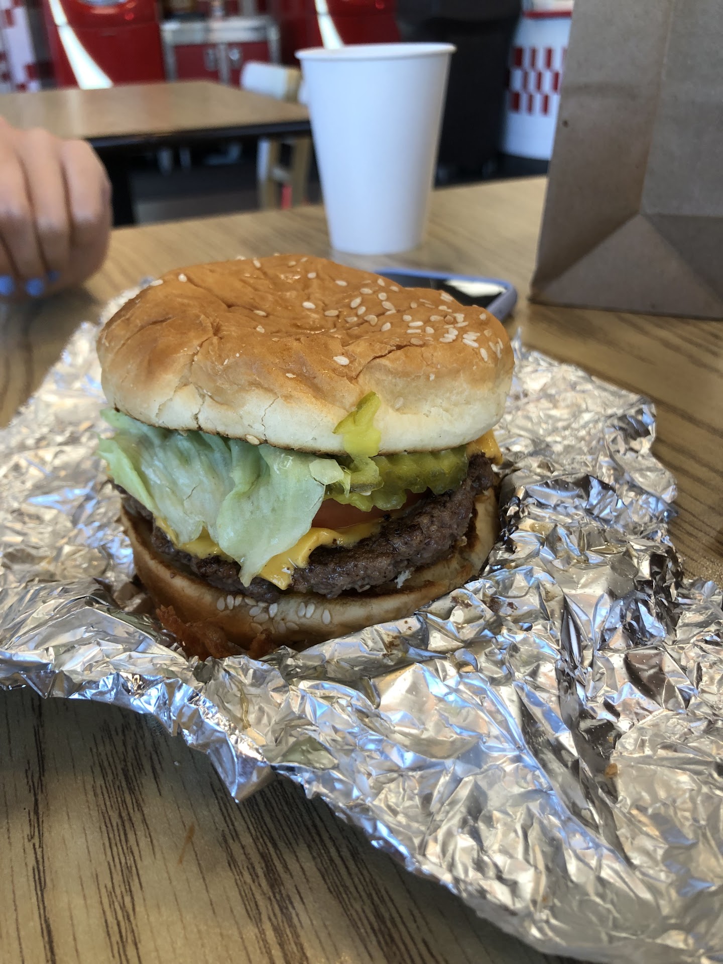 Read moreI love Five Guys, and this location's food quality is on par with other locations! They have amazing burgers with plenty of room to customize just the way you like, complementary peanuts, freestyle coke machines, and they always give you a ridiculous amount of fries, it's great.