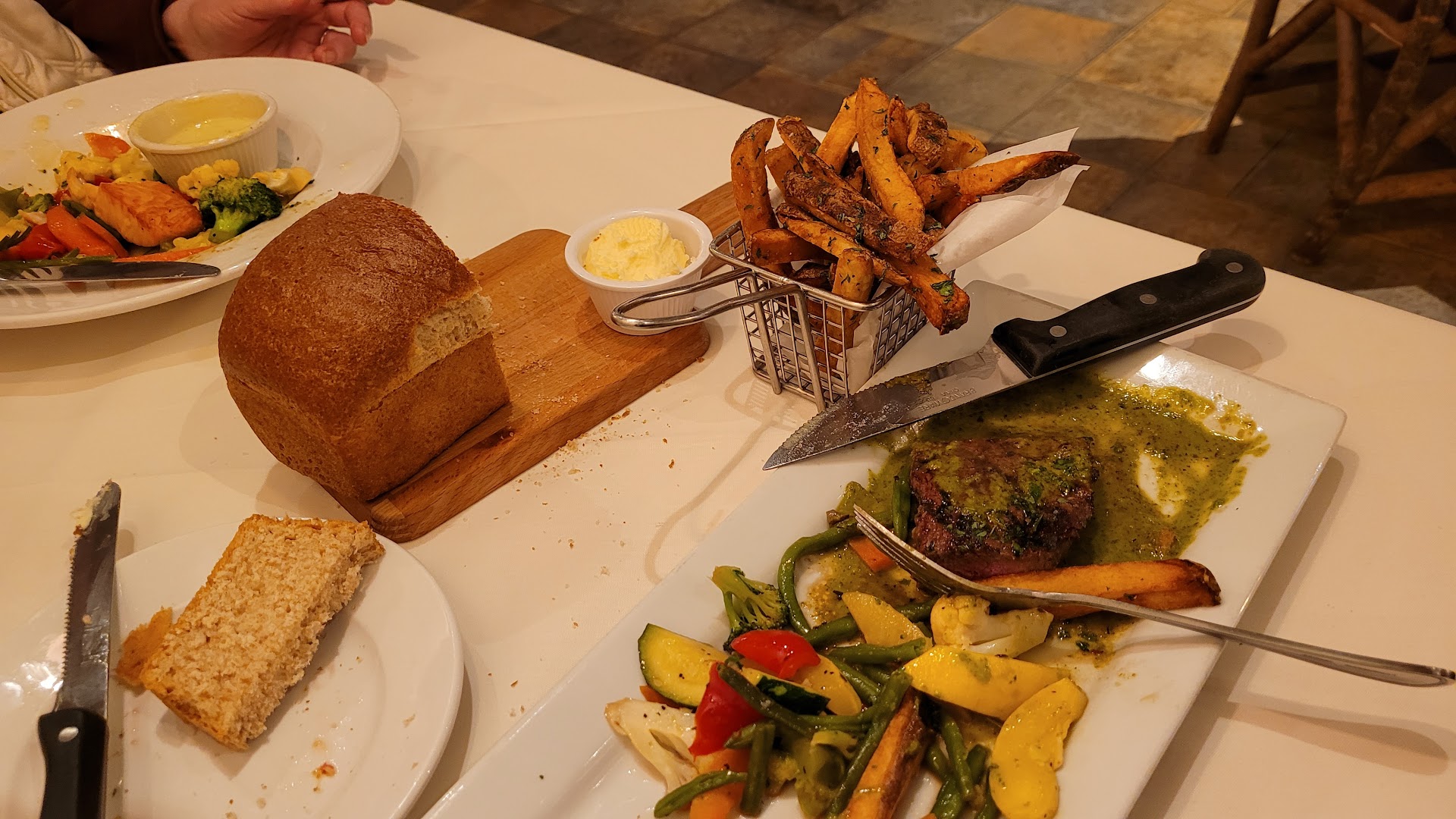 Read moreQuite the experience and not at all good. Called in for reservation at 6:40 pm, a gentleman answered, we asked for a table he then said that will be 45 min which would be 7:25 pm by my watch, so we agreed. As he was about to hang up he said “we will have the table ready for you at 7:30” and hung up. My wife and I both looked at each other, that’s 50 min but what ever. When we got there we checked in and then sat there until 8:00 before being seated. We finally got to our table and ordered, we both agreed on the prime rib only to be told by our waitress that they were out of prime rib. We had to changed our order, my wife settled the meatloaf and I got the Halibut tacos, I also ordered the tomato basil soup and we jointly ordered the spinach artichoke dip appetizer with two diet cokes. The tomato basil soup was good, the appetizer was un edible. The dip came out in a crock, it was obviously hot at one point because the dip had spilled over the crock and onto the side of the dish but when we took the first bite it was less than lukewarm, it was not good so we pushed it aside assuming it was a one off type deal. Then the waitress, Jill was her name brought out my wife’s meatloaf, it was so over done that my wife tapped it with the side of her fork and it sounded like a thin sheet of plywood. We brought this to Jill’s attention and she nicely said, “I’m sorry, let me take it back and get you a new one.” Which she did. The replacement dish was cooked seemingly better but just wasn’t very good and my wife had a couple bites and couldn’t eat it. I ate my halibut tacos, they were good, A bit pricey but okay. When the bill came it was $80 and change for the two of us and with a 20% tip it came to $96.00. I wouldn’t recommend this restaurant and won’t eat there again. It’s over priced for the quality of food and although it didn’t seem overly busy, there were plenty of empty tables, the...