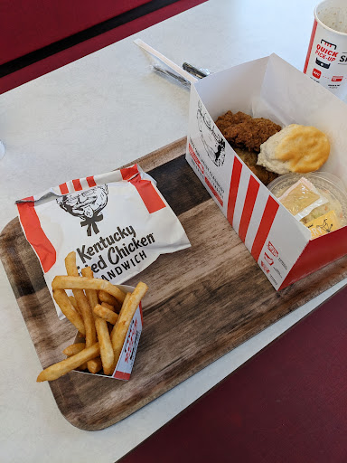 Read moreIn the mood for chicken and not one for fast food, I saw the menu online and opted for drive through. When I ordered their special they quickly informed me it's discontinued, and end of statement. The service provided was not trained to offer an equivalent and I had to ask for a "comparable item" and was told it's an 8-piece meal. I had to ask for the difference in price, and was never asked what type of chicken (original recipe or crispy), the person just took my payment, closed the window and carried on with the order. I knocked on the window, without any response. After a couple of minutes, a different person returned with my card and receipt. As they turned and started to move away I caught their attention to ask about the chicken and was told they didn't offer because I didn't have a choice since they were out of crispy recipe. I have the okay and a couple of minutes later another person came to inform me they couldn't complete the meal because there were no biscuits unless I wanted to wait another ten minutes. I was stupified with the process of having to initiate resolutions by asking questions. What are the options? Wait, or we could give you cake or pie or another side. What are the sides? Potatoes, Cole slaw, or Mac and cheese. The process was mildly frustrating at least. When I pulled out to leave and got on the road, I dipped my hand in for the cheater piece that every parent gets for making the trip. The chicken was rubbery, with much of the crust cooked hard so that it was like cheering on the bone. I set it back and prayed everyone would be hungry enough to just eat, so that I didn't have to go back and address the order again. The score of 2/5 is deserved because of poor service and disappointing food quality which will likely get dismissed with being within 2...