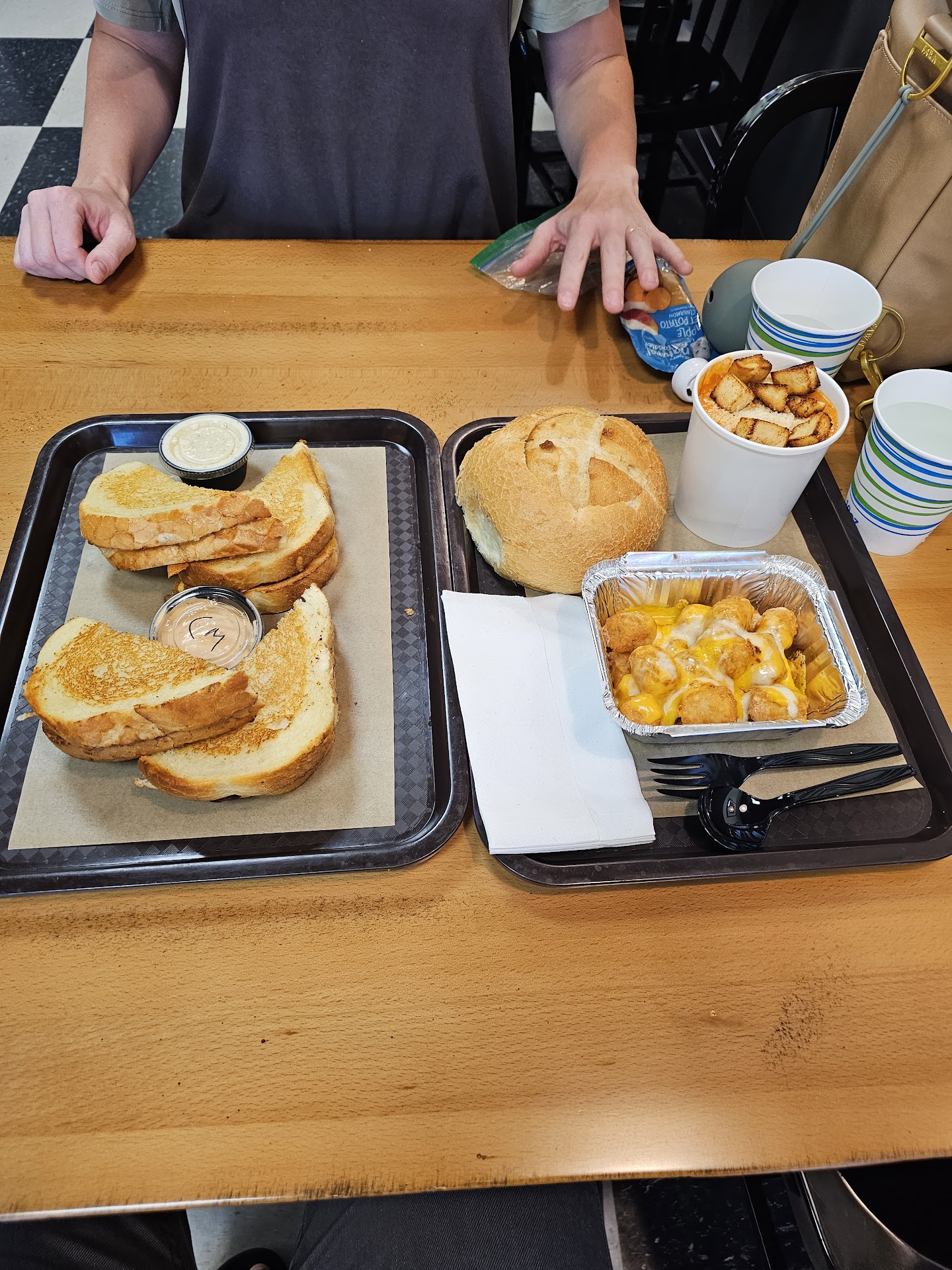 Read moreSeriously the worst experience at a restaurant. We paid nearly $50 FIFTY BUCKS for a very mediocre salad, bland sandwich, bland fries, 2 meager Mac n cheese bites, and 2 small chicken tenders that were obviously frozen and reheated. Here are my complaints: food is nothing like what is pictured on the website. Not super cheesy, not fresh. Only similarity is that it was hot. food is so bland I could’ve done better with frozen chicken nuggets at home. service was awful. Took FOREVER to get food, to ask for sauce, to get refund (had to pay us in cash cause they didn’t even know how to refund to our card). got our order wrong and then pushed us to the back of the line of orders so my salad (literally lettuce, croutons, and meat) took so long to get to us I had eaten my kids’ food in the meantime. :P I’m pregnant and can’t eat deli meat. Their pictures of the salad shows chunks of cooked chicken so I thought I’d be safe. Nope. They ran out of the chicken chunks so they decided, without asking me, that it was ok to just put deli meat in my $10 salad. Seriously?! I can’t even eat it. And they didn’t have caesar dressing for a caeser salad. Huh. Seems like they should have enough dressing… fry sauce had chunks of mayo - obviously whoever made it didn’t really care. root beer float ($6) was 1 scoop of meh vanilla ice cream in 3/4 cup of root beer. I’ll just go to Walmart next time and save a buck to make 25 root beer floats.