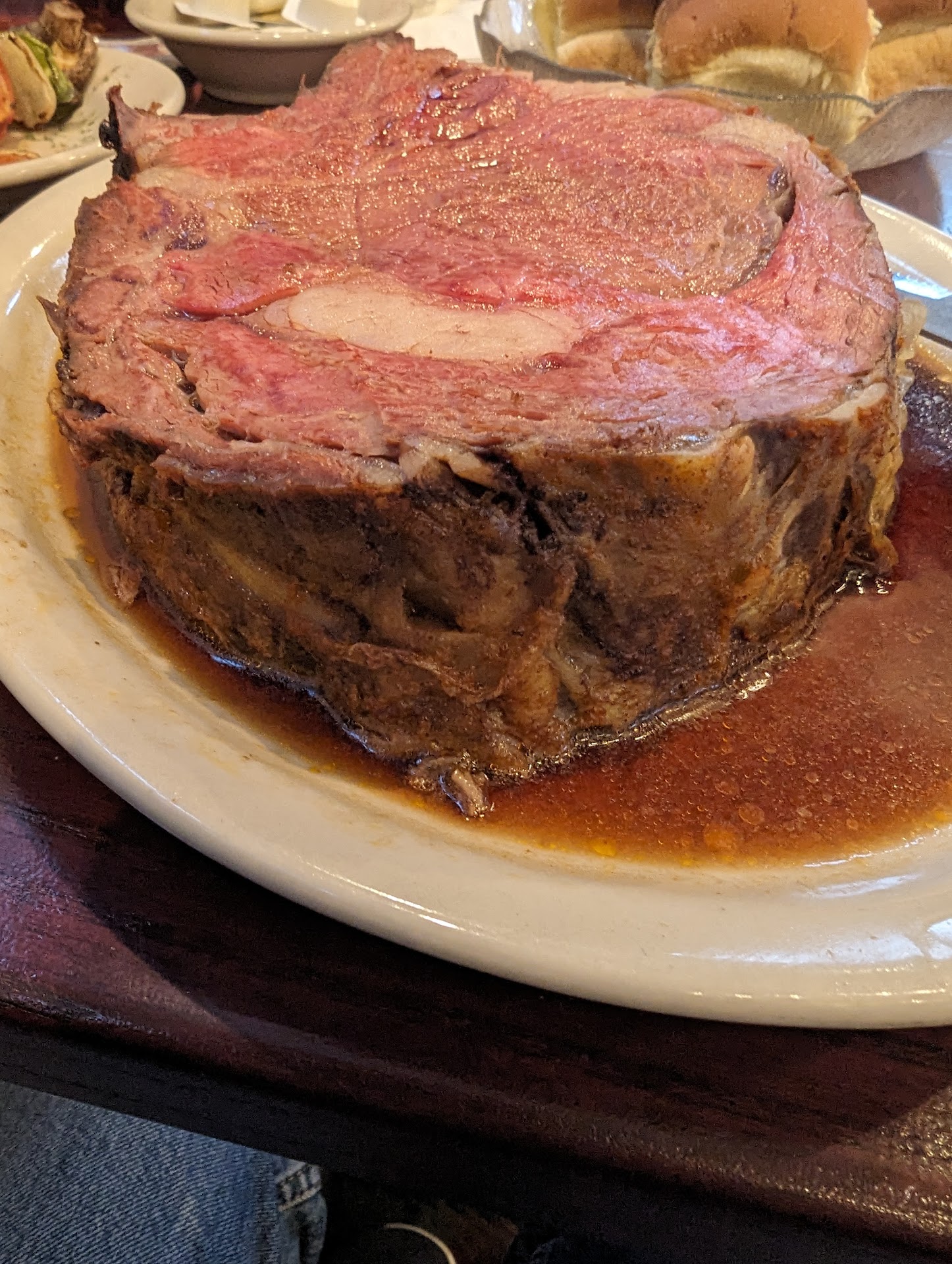 The highlight of my meal was the colossal 2lb prime rib, a masterpiece of culinary art presented in a perfect medium-rare finish. The meat's tenderness was beyond my expectations, melting in my mouth with an almost unbelievable sweetness. Cutting into it, each bite-sized piece was a revelation, bursting with flavors that danced delightfully on my palate.