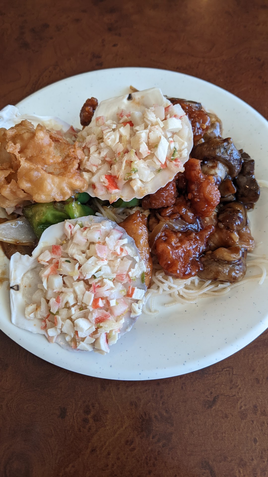 Read moreLunch is worth the money. Good hot tea and pepper steak.. pre-covid - you couldn't beat this place. Today, it was different... Alot different. The sauces have hard dark tops, have been sitting a while.. lobster bites so dry couldn't eat.. shrimp fried out too, and basically all of the fried stuff.. the general TSaO has been so much better before.. this time it tastes like ketchup n bbq mixed.. def a BBQ hint in thatess.. yuck. No good. The pork was tough, otherwise their coconut or walnut pork, whatever they call it, would've been good. There were 3 kinds of California rolls.. two were good, one was spoiled tasting.. the one with the black seaweed/kelp on outside..... The rice alone was fishy tasting... More fishy than their fish... So I would pass that up. Pepper steak was what shined today, and not alot more. Sad. Used to be so good. As far as service, they are always dry people here.. their food always was so good before, they didn't need to be nice.. ugg. I hate this so bad. Truly. They don't bring you extra napkins.. and don't trust to put my spoon on table, cause as people left, I saw tables being cleared, but not sanitized. We may try again on future, but my heart's so broken that this places food has went down hill, I just don't know. So hoping the last time or two is no...