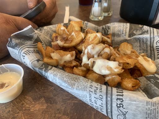Prices are high. Waiter was nice and refilled water and tea frequently. The appetizer we bought was the snake bites which is onion rings and fries chopped up and queso sauce on them, I told waiter to make sure there was plenty of queso on it. As you can see there is hardly any queso on it so I ask them for more queso they charged me 2.00 for a very small sauce cup. I got the chicken club the chicken was chewy brought home to dogs. Husband got the Italian club sandwich with onion rings, he said it was ok. I personally will not go back, for two of us to have a sandwich with 1 side and 1 appetizer and him a tea and me water was $48 and some change. If their food was exceptional I could maybe see the price but it was just just plain Jane expect something better for them...