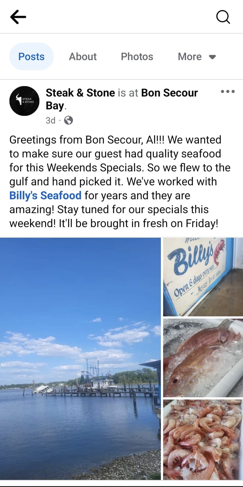 Read moreThis was our 5th time to eat here. And it's always been with family/friends celebrating an event. But on each occasion Steak & Stone has run out of several types of beer. And the last occasion we went was I believe 2 weekends ago. Four of us. We were seated at 5:00. There was a Miller Lite drinker and a Michelob ultra. Then the other 2, coke and water. So one special was a Scallops dinner. Went to order two of them, they were out. So one of them just ordered blackened chicken in cajin sauce. Then 2 of us was want the other special. Lobster with a tomato puree with vegetable in with it. And a chicken, shrimp alfredo dinner. So in the meantime the 2 men went to order their 3rd beer. Now they are out of Miller Lite. So they just get Ultra's. It took at least 40-50 minutes to get our food. But it was so cold in there I was shaking all over. I had to put my jacket back on. And we weren't even by the door. So we get our food. They left the chicken off the alfredo dinner. So they were supposed to be making one. Then the alfredo dinner he had was awful. It was watery and had way to much parmesan in it. The cajun chicken was so dry he couldn't hardly eat it. Now for the Lobster dinner. The Lobster it self was good. But the tomato puree was so spicy that my mouth felt like it was on fire. I tried another bite and it was worse. And the lady that got one to, said the same thing. So by now the guys needed something to wash down what they were trying to eat. The little waitress said I'm sorry but now we are out of Mic Ultra.... What, did someone forget to place the beer order? So they had to get Coors Lite. And I don't know how many times she apologize for all the trouble with the food and not having the beer. She was great. She was the best and kept saying she was sorry. Then she said where's your chicken, someone was supposed to bring it out. Well that thing was as hard as the table. It was ice cold. It had been sitting in the window for who knows how long. But the host came over as how things were and we told a little bit. She took the chicken back and took it off the bill but nothing else. None of us are the kind of people to tell yes we want the whole bill comp out. But I feel you should be aware of these things. It's going to be a while before the four of us eat at steak and stone again. We all said we need a break and maybe it will get back to the way it was when you...