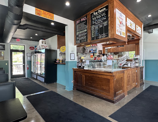 What a nice little spot for a quick - or sweet - bite! There's approximately a ba-zillion different types of hot dogs; pork - carnitas, sliders; beer (I think wine); sodas; chips; and a variety of ice cream: soft-serve, hard, shakes, flurries, etc... Service was notable. Having worked in the service industry it always stands out when an employee greets me as I'm walking in the front door. Ditto when they're articulate and make eye contact. (Bonus: when they're doing so and it's their last day before heading back to college. Says a lot about the employees Capital Dog hires and/or the business itself.)