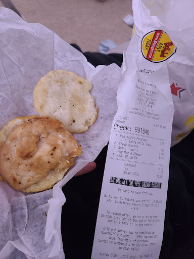 Normally I would say all these people giving bad reviews here are a bunch of Karen’s but I actually agree. This is the worst place to eat in Leland lol. But not just because of the service, what do you expect from a Bojangles?? This is pretty much consistent terrible food and service at every bojangles I’ve ever been to. This is why I don’t go here. But the reason for this review is a specific time when I ordered with the robot and get a chicken biscuit meal with bo rounds and tea. I pull up and pay at the window. The lady wasn’t rude or nice and tells me to pull up for my bo rounds. I wait maybe 5-10 minutes and she brings me my food. I go to pull away and see that they didn’t give me the bo rounds I “waited for.” So reluctantly I park my car and walk inside. There’s a lady waiting already. And I was going to stand behind her because I didn’t wanna be rude but I was hangry so I stepped in front of her and called for help. They stared at me like I had four heads and pretended not to hear me. I finally say after 6 mins “can I just get my Bo rounds” cause that’s all I really came here for tbh. The lady finally looks at me and says “ you got Bo rounds?” And I say “yeah that’s what I thought I got pulled up for” and It even said it on the receipt.