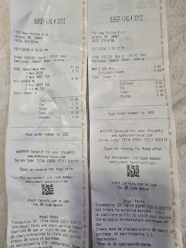 Read moreWent to Burger King New Pointe Blvd in Leland tonight. They left out half of our order, and put onions on the three burgers that they gave us , when I specifically said "no onions ". I took the burgers back, spoke to the manager, who was rude and not listening to me while trying to correct my order. She asked me for the food back, I handed it to her and she walked around to where they make the burgers pretending to replace our burgers, then gave me back the same burgers ' with onions ' that I had ask her to replace. And the fourth burger was simple, KETCHUP ONLY, BUT it had cheese. lettuce , pickle, mustard and ketchup. A NIGHTMARE !!!! When I ask her if it was right she raised her voice at me and said "Mam , I made it just like you said , I looked at the order "!! I couldn't even reply. $25.00 thrown in the trash !! The only thing that she got right was a plain Jr whopper with cheese and the fries. Oh , did I happen to mention that I had to drive up to the first window to place my order in the beginning, because the girl that was taking the orders was not listening to me. The photos are of the 3 Jr whoppers with no onions, with onions. And over the top with mayonnaise ! Who would eat something that...