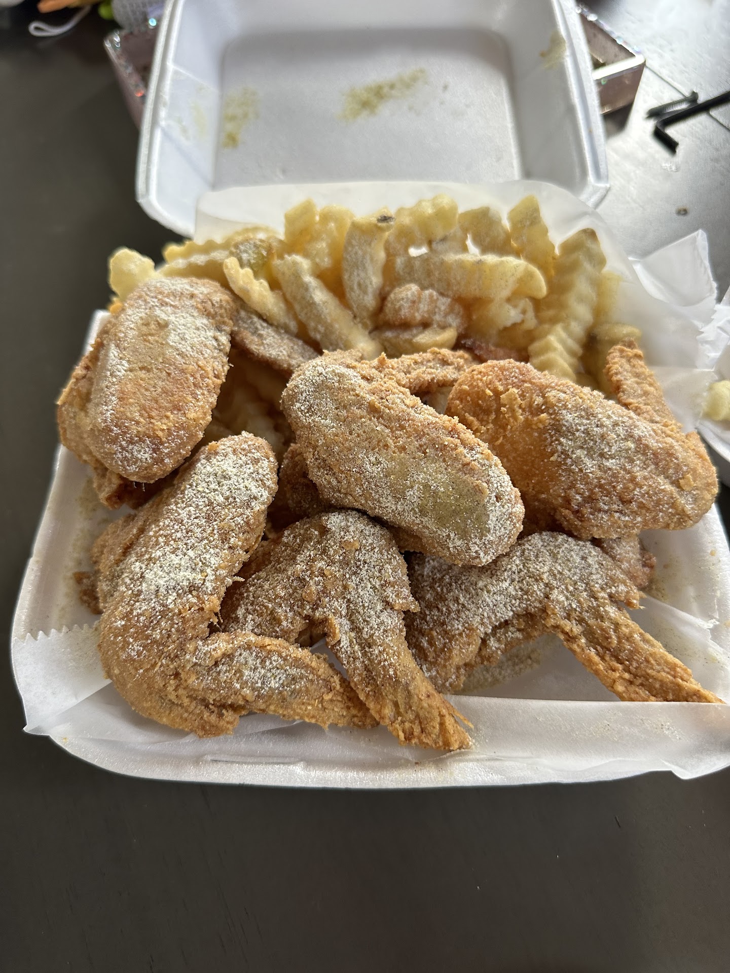 Read moreWill start with, no where on here does it say this place is take out only, the "doesn't take reservations" implies you can dine in. You can not. Having to take food, in unvented Styrofoam containers, 20 minutes home meant we started out behind the mark, with soggy fries and onion rings, and a warm salad, all which I'm sure would have been tasty if eaten right away. The salad used fresh greens and nice toppings and a cheap bottled ranch dressing. The quality of the salad deserves decent dressing to go with it. We asked the girl at the counter several questions about the wings but she didn't ask us about flavors, we didn't even know we could get any other option than plain until I looked at the online menu. Wish we could have tried a flavor because the plain was just that, plain. Hot, Crunchy, pretty juicy but also bland. I'm sure any of the flavors or even some dipping sauces would have been a great compliment. The Philly steak sandwich was good. The prices are very reasonable and it was all cooked quickly to order, with only...