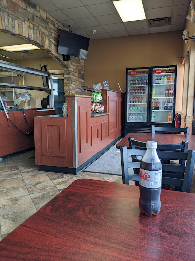 As other reviewers have said, this is mostly a takeout place. It only has two tables. One table seats 4 people and the other table only seats two. I gave this place four stars for atmosphere, even though it only really deserves three, because the restroom was clean and well-stocked. Unlike the Speedway gas station I'd stopped at before lunch. (What the heck has happened to Speedway? They used...