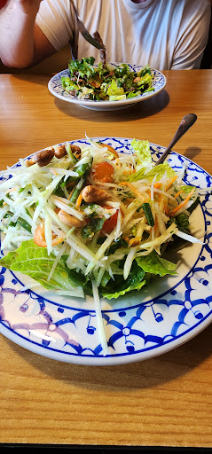 Do NOT recommend! Very Americanized, Non traditional Thai food. Tip: If you don't see any asians eating at an Asian restaurant, its very likely not very good. People in Lemoore rating this place 4.7 stars have never been anywhere else with good thai food. I understand its a small town and this is all they have but this place is a disgrace to all southeastern asian people. The service was super slow! Took almost an hour to get my papaya salad and it wasn't even that busy in the dining area. However they were popping out take-outs like crazy. They also served two other tables with their food before us even though we had ordered first and all we ordered were salads! They also don't have Sticky Rice! What southeastern asian restaurant don't? When I finally got my papaya salad, almost an hour later, it was absolutely watered down, had hardly any seasoning nor flavor. My spouse's beef steak salad was served way before my salad, and it was very chewy and tough. He didnt get much meat at all in his salad. The meat quality was not very good. We also ordered chicken larb to go which was very watery. Surprisingly the larb wasnt that bad but it was unusually sweet than most larb dishes im used to. Other peoples food look dry as heck. The big group next to us were literally just quietly pecking at their food. They obviously didnt look like they were enjoying their food either. This place would be shut down if it was in Fresno. The waitress was nice but she didn't know anything about Thai food, even though she works there, so that didn't help either.