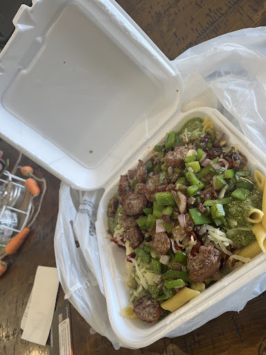 Read moreThe food was tastey, there are NO Signs, NO advertisements posted up, just 1 lil paper on the counter window. I couldn't even find an online menu. It was my 1st time there, I had no idea what I was ordering, however the associates were very Friendly and helpful. I asked for shrimp 🍤 unfortunately 😕 they only serve shrimp on weekends, so I ended up getting grilled chicken alfredo 😋. Toppings are separate and you can choose whatever you like from their options,, which was pretty cool. The serving size is enough to feed 2, maybe 3 people. It was flavorful and I enjoyed it!! 😉 there was even a customer ahead of me making suggestions, I liked that too. Mayb next time I will try something different...but I do hope they hv more visual signs or menu posted at a later time. I felt rushed but I'm thankful the associates were helpful and...