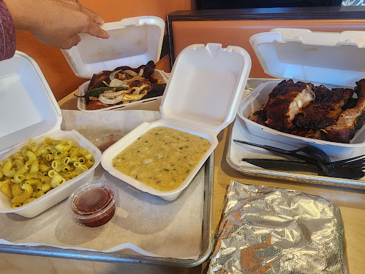 This place serves grilled meat only in the Weekends, so I got the whole grilled chicken combo (for $21.99) which comes with two sides & even salsa on the side, and I also got the half rib rack (for $16.99).