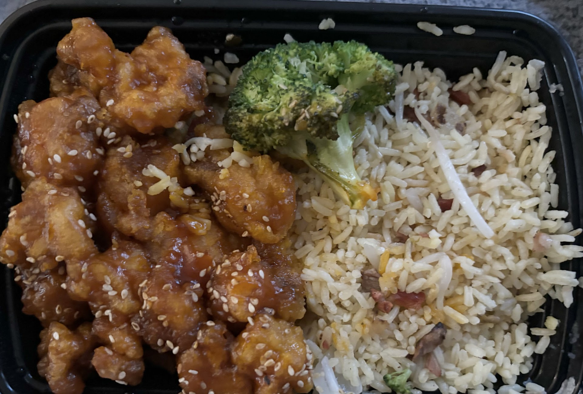The worst thing was the shrimp fried rice. It smelled so fishy and rancid as soon as I opened the container... terrible.