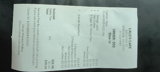 Read moreWe decided to give Lalo’s a try on Mother’s Day. I reserved a table for 10. We were sat on time. Our waitress was so nice and super comedian funny. She had us cracking up!! I was super impressed that she took our order without writing anything down and made no mistakes! - and while taking our orders she was cracking jokes. She truly made the experience a joy! We ordered blueberry pancakes, waffles with fresh fruit, french toast and omelets. Everything was very tasty and homemade. Prices are very fair. Cannot...