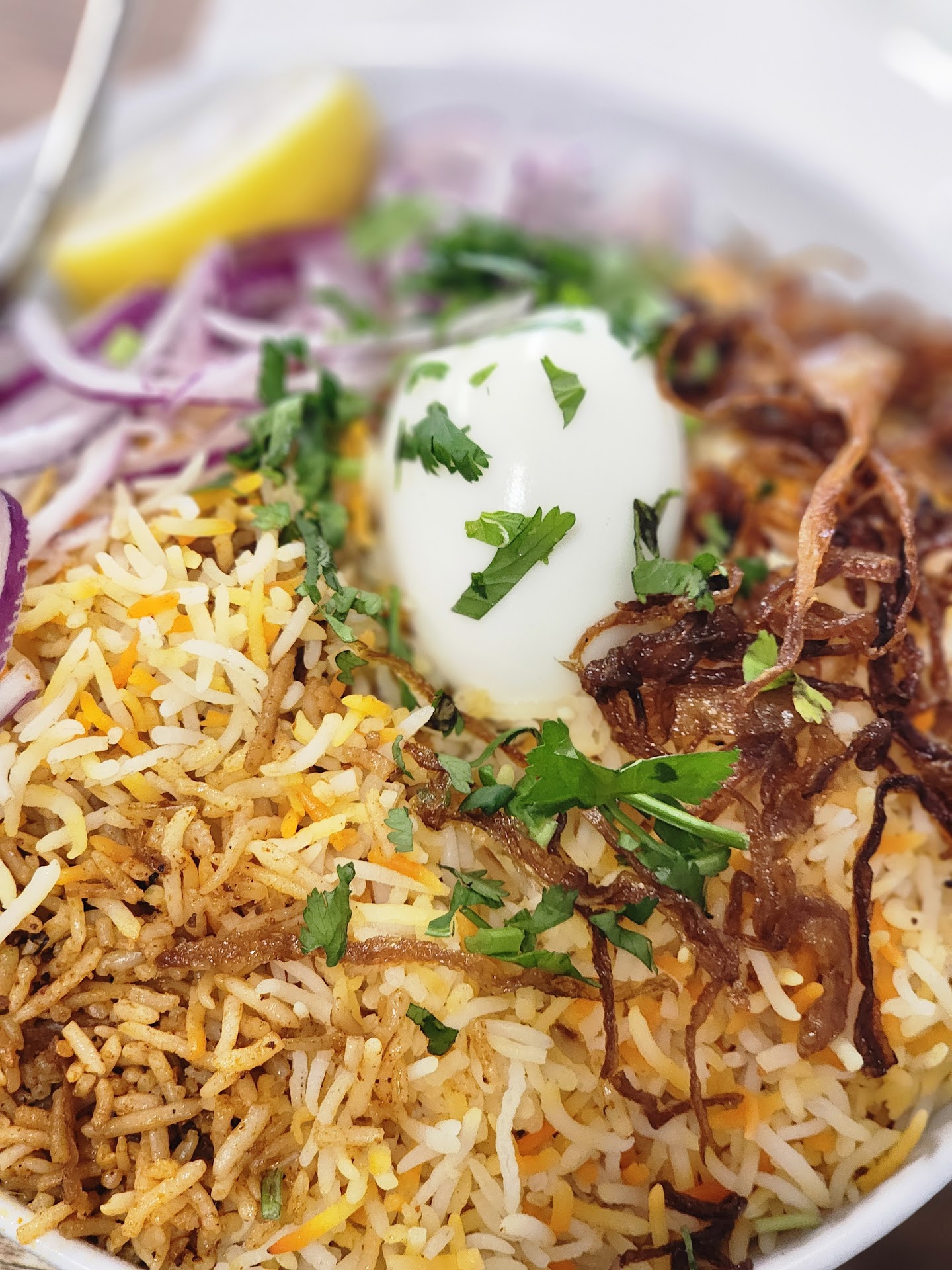 Tandoori Chicken Chicken Biryani Chicken Chettinad* Chicken Tikka Masala Mirchi Ka Salan* Aloo Gobi Vegetable Pakora Vegetarian Fried Rice Naan Sambar* Salad Bar Payasam (rice pudding)