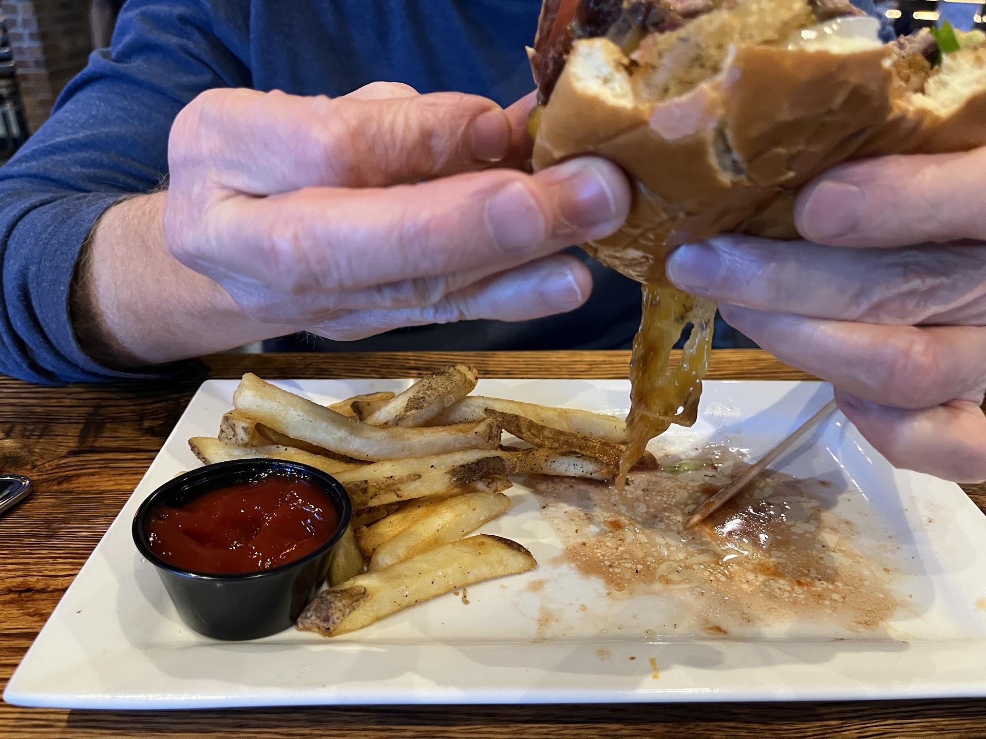 We've been excited for the opening of the new Burg & Barrel Lenexa location at 87th and Bourgade and tonight was a perfect time as it was Allyson's birthday. Located just down the street from the elementary school we were at for the student Christmas concert, seemed opportune to stop in. The new place was packed! The restaurant has been overhauled since Gambino's left and looked great. Started out with fried mushrooms because you don't go to Burg and Barrel and NOT get fried mushrooms. Big huge portabellos with that delicious light tempura type batter with a hint of sage...mmm-mmm! Also got chips and queso as well as fried pickles. Lynda had a mule cocktail while I got a really tasty stout, 10% or 20 proof stout! Entrées were a chicken tender meal which they are actual fresh breaded tenders from the breast, so incredibly light and tasted totally like Sunday homemade fried chicken; BLT with avocado; grilled bbq chicken; Lynda had the grilled chicken caprese sandwich which was total off the hook delicious with the pesto, grilled chicken, tomato and balsamic reduction...total 11/10 of a sandwich and I had the Upstream BLT which is the grilled salmon with bacon, lettuce, tomato, avocado and honey balsamic. In the past I always get a Big Pig tenderloin as imo, it is one of the best pork tenderloins in KC...but this Upstream BLT with the fresh salmon, omg was so good 😋. For Al's birthday, she had the Sunday Funday. It was one of those lick the plate clean desserts. The pretzel bites were soft and airy and the cinnamon/sugar mixed with the ice cream and chocolate sauce was like a pretzel and churro collaboration of yum. Great start for Burg & Barrel in the neighborhood. We got to meet one of the owners and the staff was just on top of everything. Great supper and thanks Burg & Barrel for a great evening