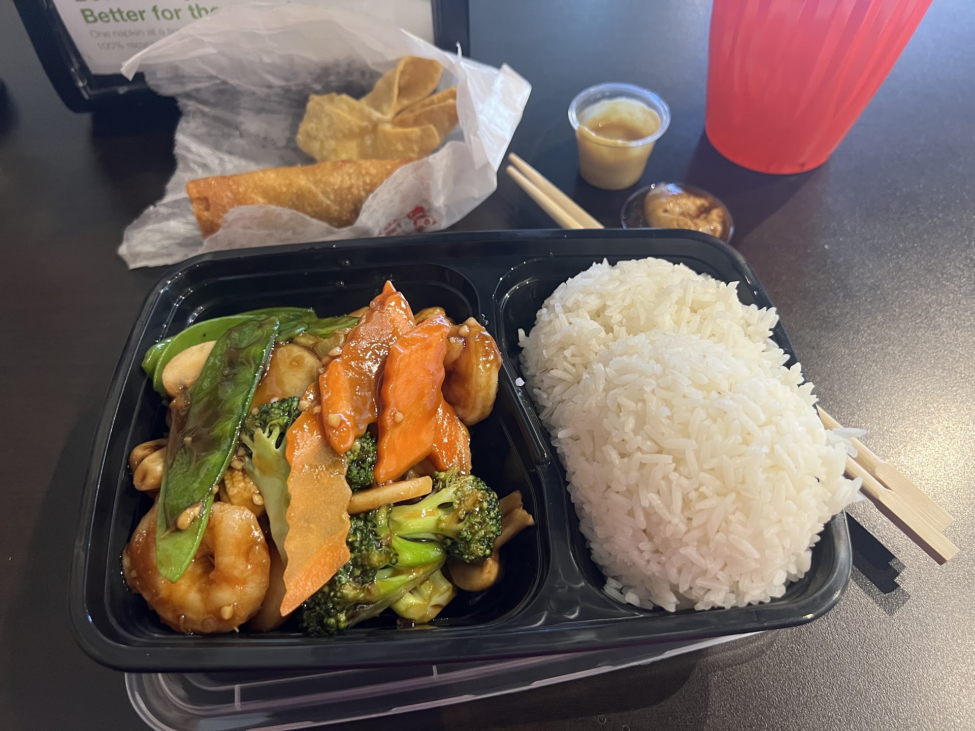 Read moreFantastic experience! I had the shrimp with mixed vegetables combo. Food was colorful, hot & delicious. Portion size was plentiful. Mixed vegetables included broccoli, snow peas, mushrooms, water chestnuts & baby corn. Meal also came with white or fried rice, egg roll & crab Rangoon. The shrimp size was medium to large & fresh. The crab Rangoon had lots of cream cheese & the egg roll was tasty. Plus, I loved their hot mustard! There’s no soda machine, but I did see cans. & they have a filtered water machine. I’ll...