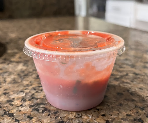 However, the extra side of guacamole was the strangest part of all. This container was even smaller than the salsa container. It was perhaps the smallest container manufactured. It costs $2.25 which is ridiculous for the mini size considering Wal-Mart sells an entire avocado for 70 cents and that's the retail price so the restaurant pays even less since they buy them wholesale. I'm all for a restaurant making a profit, but that small side of guacamole shouldn't have cost more than a dollar. It was tiny.