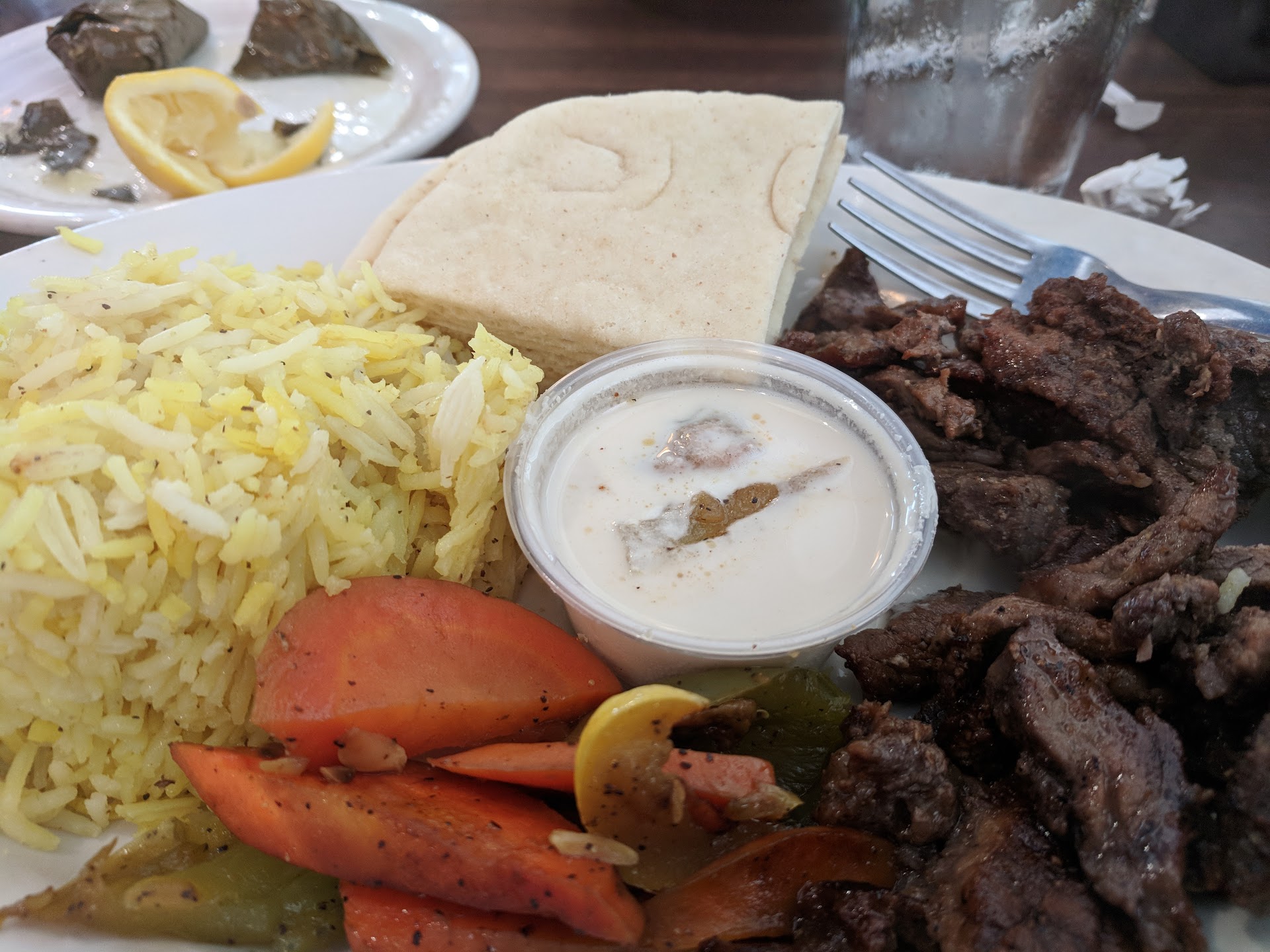 Second visit 9/28/18: Food on combo appetizer platter was lovely, the meatless dolmades made a vegetarian so happy today. One problem: shawarma on one of our orders was skimpy and much of it was so dry it was like rocks (we also disliked that they spread the hummus so thin to make it seem like more on the plate). We should have asked for replacement, I'm sure they would have helped.