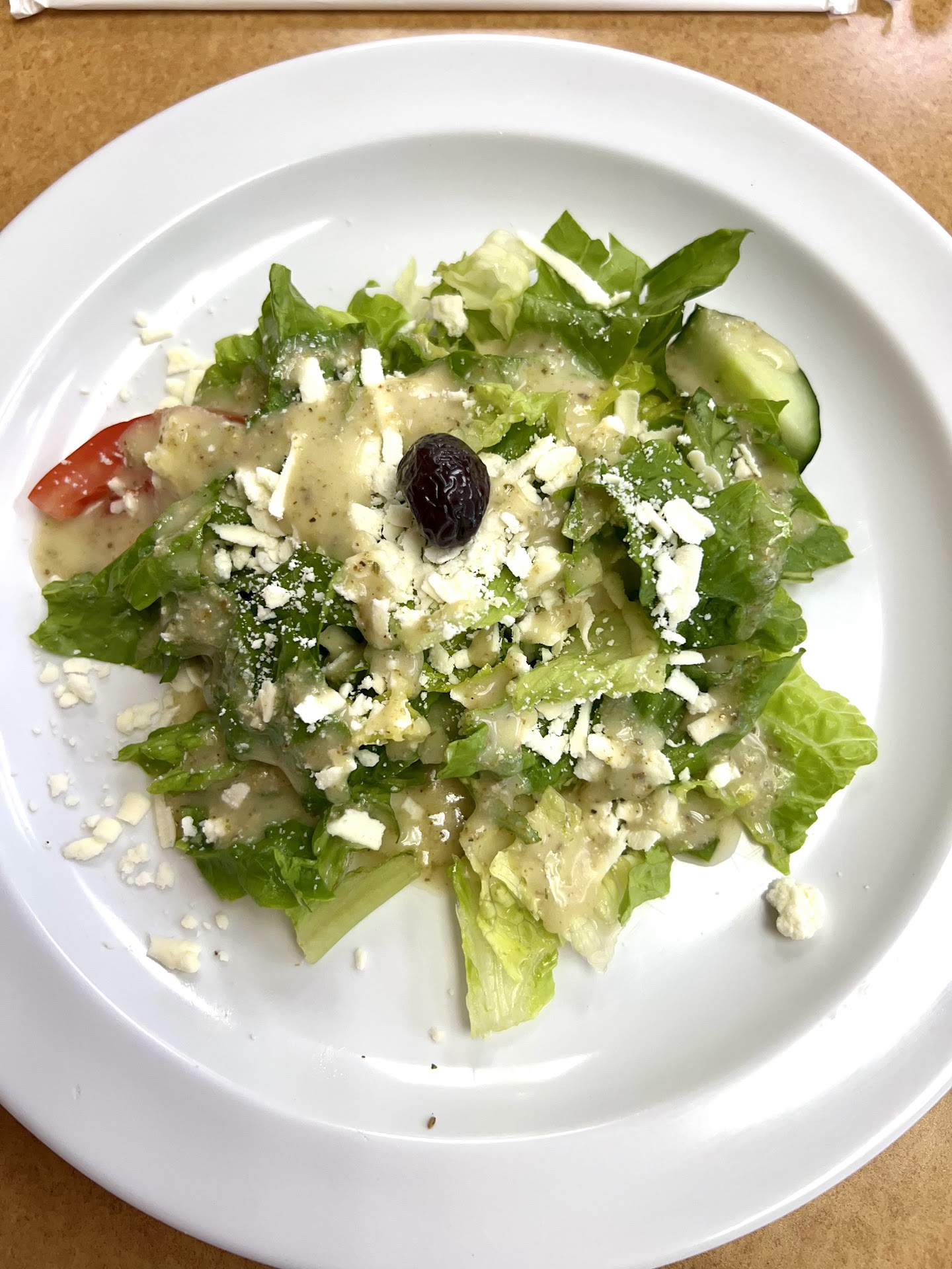 When we arrived, it was two individuals. Friendly and fun. The dining area is small, which makes me think most people must order to-go. I chose to ask what they loved best, which after finding out its family-owned was best. I had the gyro sandwich combo with chicken which came with a salad, hummus, and the sandwich. Drinks are separate and in cans. The salad was great. I thought the hummus was lacking a bit, but I didn't mind, but that sandwich. insert the chef's kiss was PHENOMENAL. We were also given complementary baklava for dessert. This baklava was full of pistachios and also just as delicious.