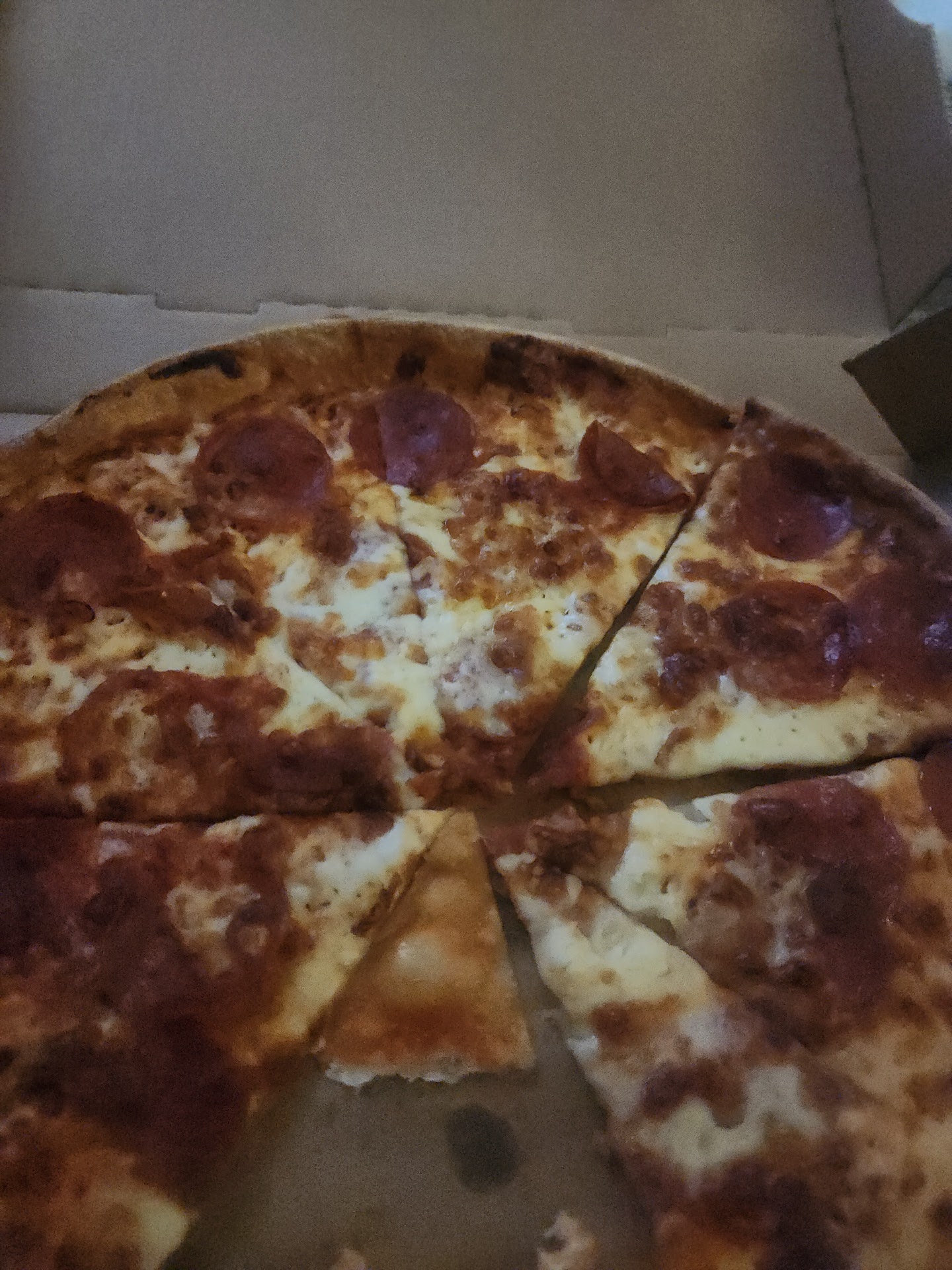 I have to say, I come to Lenexa, KS once every 2 months for business. I am from St. Louis and my preference there is Imo's or Cecil Whittakers as I love provel cheese and thin pizza. I like Pizza Hut, however never thought to try it here. Each time i come here on business, I try a new place. I always order Pizza and wings. Each time from these other places, the wings are rubbery, and just plain yuckie. The pizza is hand tossed or thicker and all dough. The topping are under par. Not good. The cheese isn't even very good and they put Italian seasonings on some. I am a pizza person. My husband says I am addicted to pizza..lol. I say I am a pizza connoisseur. First- Your driver was professional, nice and the table set in front of the door at my hotel room was nice for Covid distancing and he backed off with a smile and spoke pleasant words, which was very nice. I left an additional 2.00 for him. Second- wings were great! Had some crisp to them. I had the mild buffalo wings . Not hot, yet a little spicy sweet to them. Not to sweet though. Pizza fantastic. Crispy, fresh mushroom, purple onions, on all of it. Pepperoni on one half, not greasy at all, banana peppers on the other half with bacon. I would do all pepperoni next time. Personal preference. I would highly recommend...