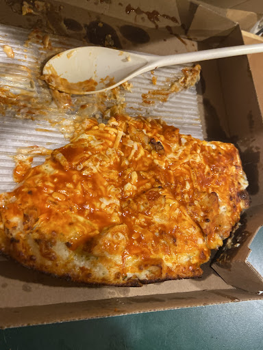 I have ordered a deep dish Buffalo chicken pizza with no onions and extra hot sauce and extra garlic Parmesan sauce from dominoes up and down the east coast, and NEVER in my life has a store nailed it so well!!! In person when placing the order, I specifically said I wanted to have to eat this pizza with a spoon there should be so much sauce. When we got home to eat it, I literally had to use a spoon to move it to my plate! Which is EXACTLY WHAT I ASKED FOR!!!! The best part? Somehow, magically, THE CRUST WAS STILL CRUNCHY and seasoned to perfection!!! Seriously, I have never ever had such a perfect pizza the way we like it before!!!