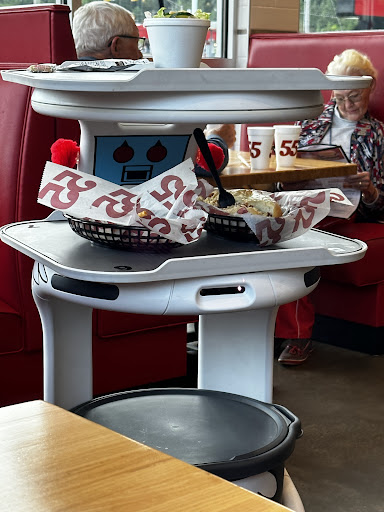Original review: What a fun place to eat! They actually wait on you and then a robot serves your food, which is so cool. Good selection of items, everything was served fast and at the right temperature. The shakes and custard are delicious when they’re fixed right (we go through the drive thru for frozen custard every so often and usually it’s made like a milkshake and not the frozen custard). Very friendly staff and clean inside. An overall good dining...