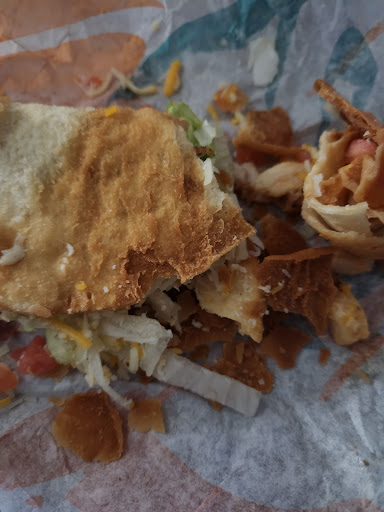 Hi, past Tacobell employee here. Let me ask you a question (current and former Tacobell employees at this location) has your owner finally stopped complaining about your drive thru times? If so they need to clearly get back on you about your times. Thereâs little to no reason I sat in the drive thru waiting ten minutes for this food behind someone that had maybe one or two items in their bag (small bag). When most items take a solid thirty seconds to a minute to assemble. My meal consisted of a Nacho Belgrade just cheese, a soft taco, a cantina quesadilla meal. Not rocket science. Nor anything hard to assemble. The nachos just chips and cheese was just that chips and cheese. The nachos looked more like a handful of chips with two squirts (one on each end), the taco had little to no meat(half scoop), minimal cheese, no lettuce. The cantina meal felt more like greasy card board, chip bag had minimal chips. The food was not up to âlive masâ standard. It was more depressing to look at than anything. Was not worth the twenty something dollars I spent here. The employees need to learn how to speak to customers. As their attitude was not necessary. Especially if a customer is being polite with them (THE WHOLE TIME). I would have gotten my head chewed off for having any type of attitude...