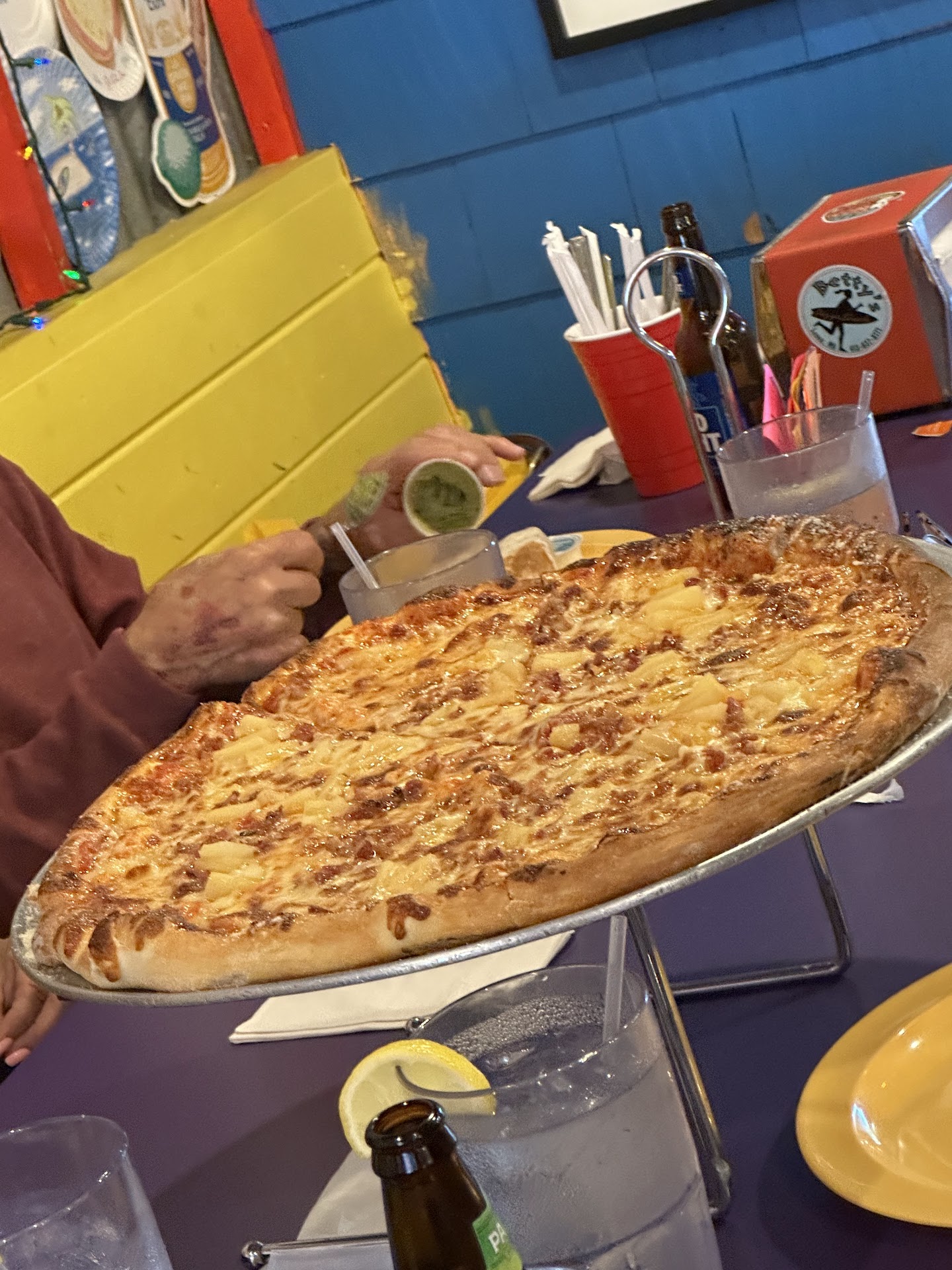 Read moreVery disappointed with the service. the place looked promising, interesting design and vibe. That being said it was very dirty, there were no napkins in the dispensers, the table was disgusting and after waiting 5 minutes with no body addressing us, we asked for the disgusting table to be cleaned which was done begrudgingly by a woman who gave us a scowl. Very unfriendly and rude in such a small and quaint town. Seemed very understaffed with only one woman serving the whole establishment, rushing in-between tables with no time to clean or take peoples orders, visually disgruntled as the place was rather busy. While I understand her frustration, the rude behavior was not necessary. This is definitely not the fault of the server, but the management. That being said the pizza was very good and tasty, and was brought out very quickly. The food was great despite...