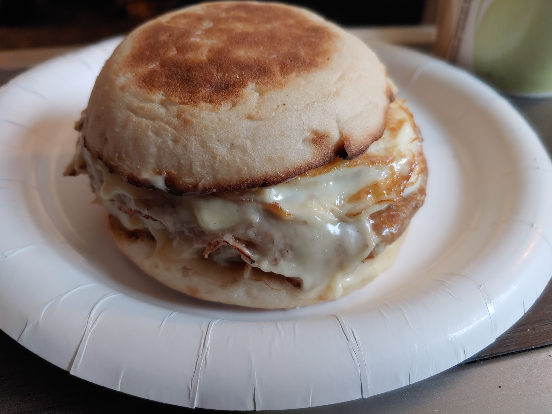 I greatly, enjoyed the sausage, egg, and cheese breakfast sandwich with American cheese on an english muffin. They do not disappoint.