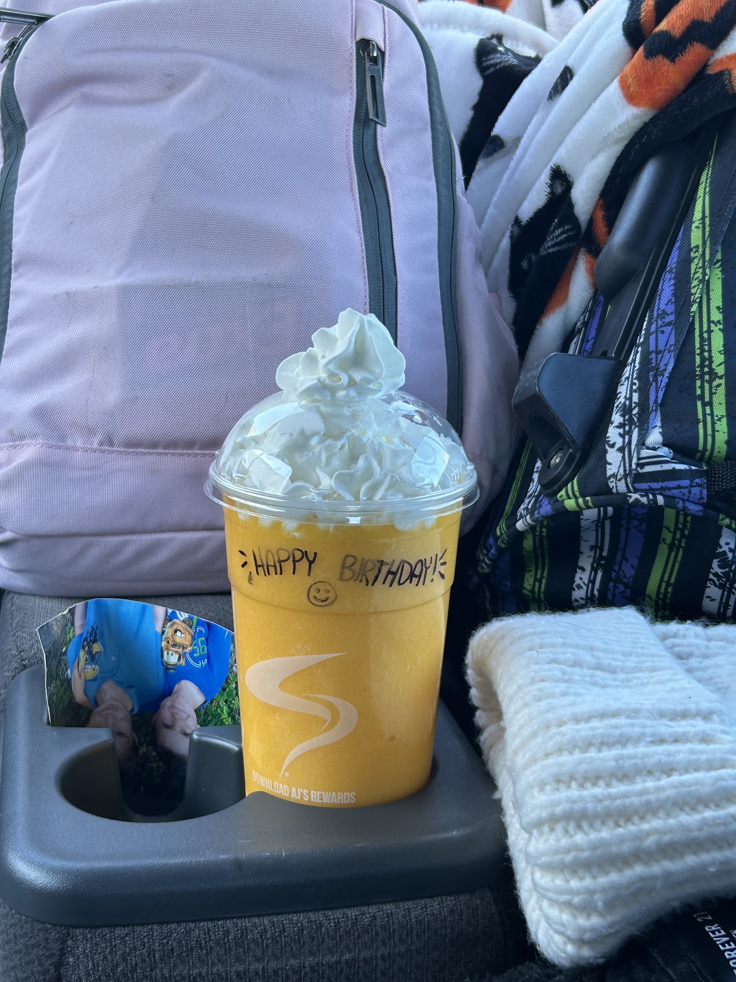 Iām always here. The chocolate chip muffins are so good, and same with the breakfast sandwiches that my boyfriend orders. The smoothies are amazing, the rushes are to die for!! My favorite drink is the iced chai latte, and I order it with an oat milk substitute. When Iām in the mood for an energy drink, I usually pick a random rush from the secret menu. There are so many options and so far, theyāre all good. The most recent one Iāve tried is the Peppa Pig one, which has hints of strawberry, amaretto, watermelon and coconut. I recommend that one, as well as the Malibu Barbie, Ninja Turtle, or 50 Shades.