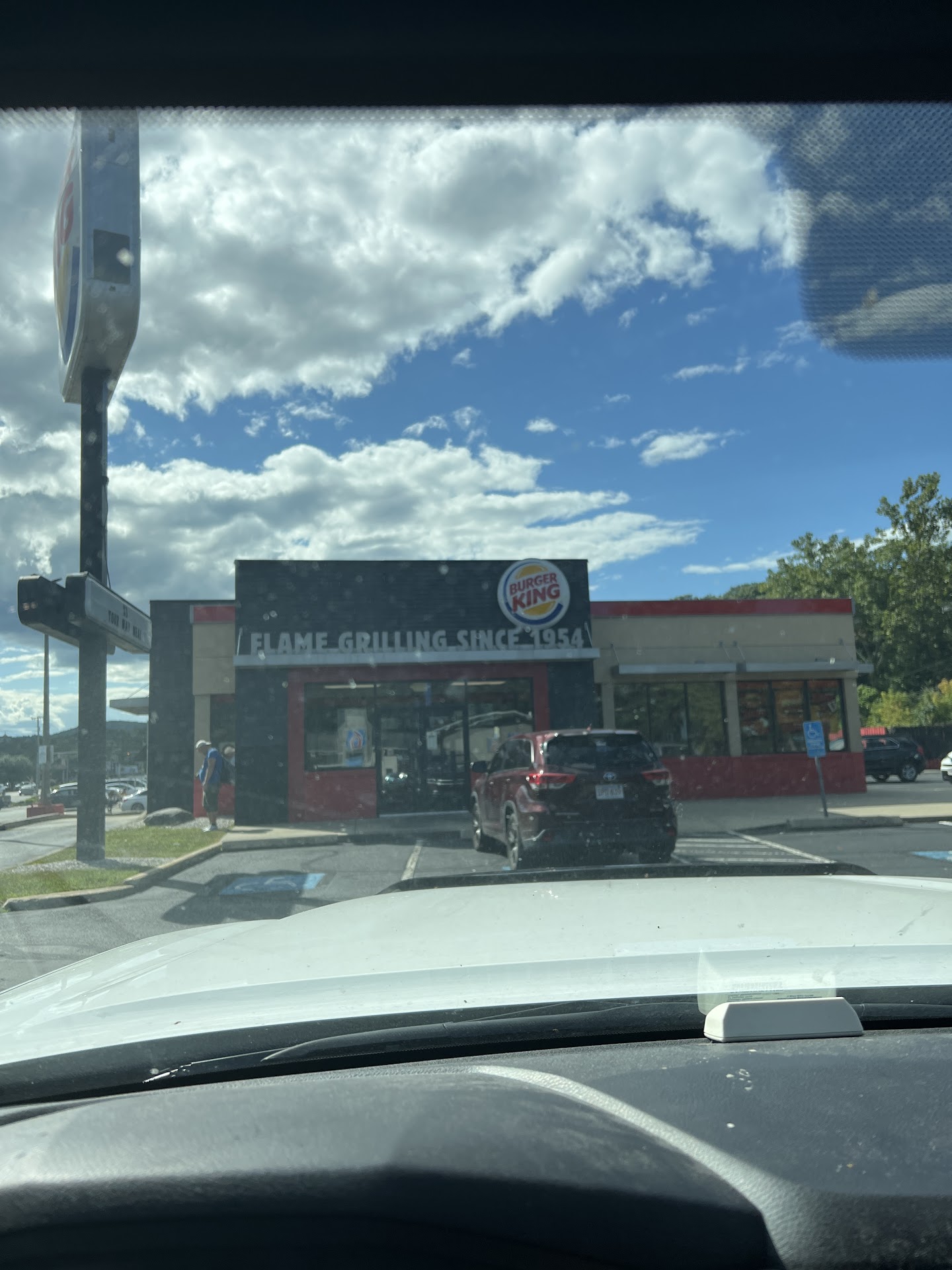 Read moreWell the Wife and I were heading home from attending a Dave Chappelle concert in Conn and wanted to grab some food before we got home. We stopped first at Dennys but they only offered take out at that time of night so we seen Burger King was open and what a bad decision. It started out at Drive up window to order. We pulled up and it took literally 2 minutes for them to respond to take order and once we placed our order we pulled up to get order and they gave us our sodas and then food. I just happen to notice it was NO ice in soda and both were extremely warm. So I told the person that passed out order Where's the ice. She said they had no ice. I ask 2ife so when were they gonna let us know that, could they not tell us when we ordered soda?? Anyway then we pulled over in their parking lot to eat before heading home and food was terrible and Wife's meal had a surprise in her Chicken Fries!! The surprise was an Old cheese stick. So needless to say it...