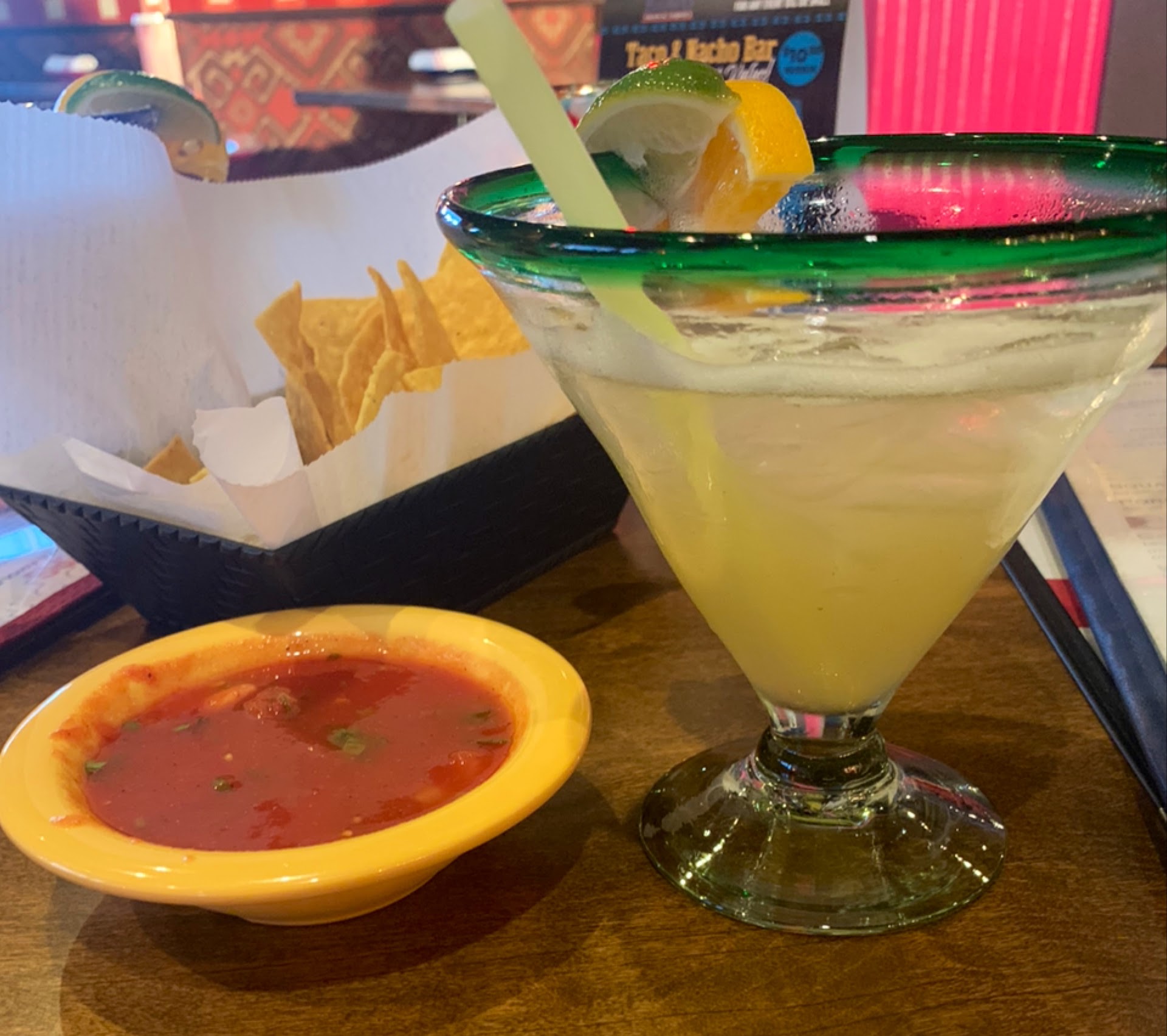 My drinks were both way sweeter than I expected. The margarita I kind of let go, but the mojito felt really syrupy and heavy. A mojito should be mainly light and refreshing. Mint, lime, fizzy, and just enough sugar to release the mint oils when they are muddled together and cut the sour from the citrus. This tasted more like a mojito flavored candy. That's where your star was docked for food since there was no separate category for drink.
